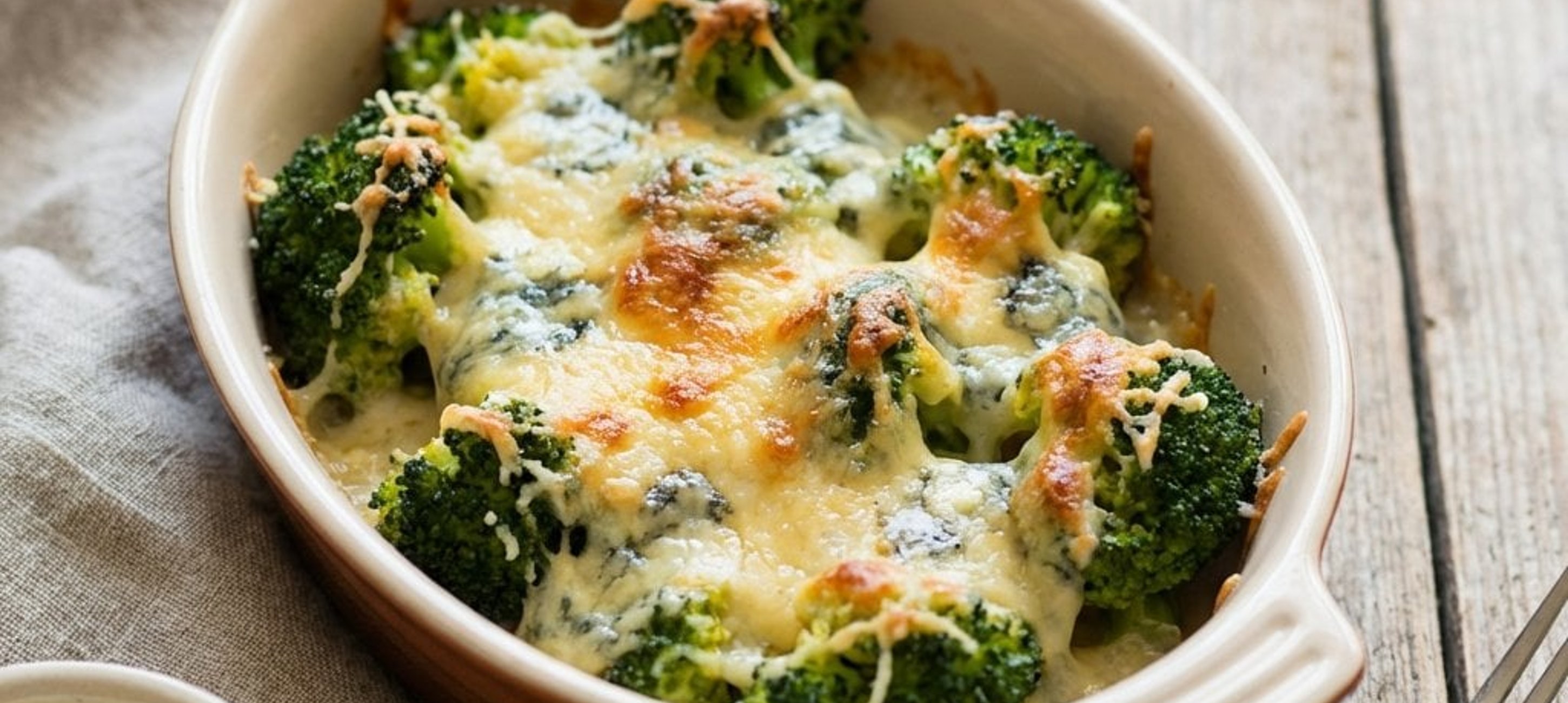 - 4Den gekochten Brokkoli abgießen und in die Auflaufform geben. Die vorbereitete Käsemischung gleichmäßig über den Brokkoli verteilen. Im vorgeheizten Ofen bei 220–225 °C for etwa 12–13 Minuten goldbraun überbacken.