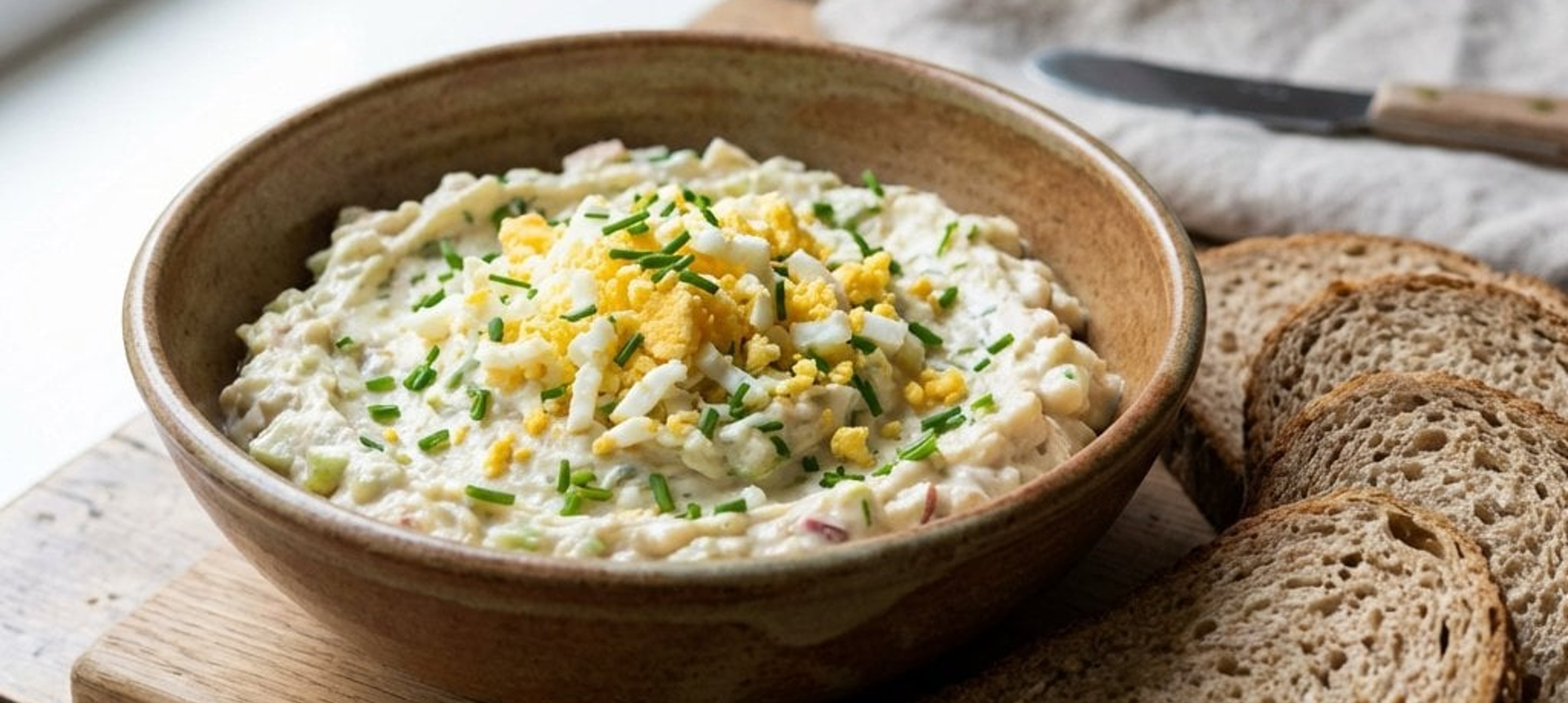 Servieren Sie den Aufstrich am besten auf frischem Sauerteigbrot oder Vollkorngebäck. Für eine extra frische Note können Sie ihn mit fein gehacktem Schnittlauch garnieren.