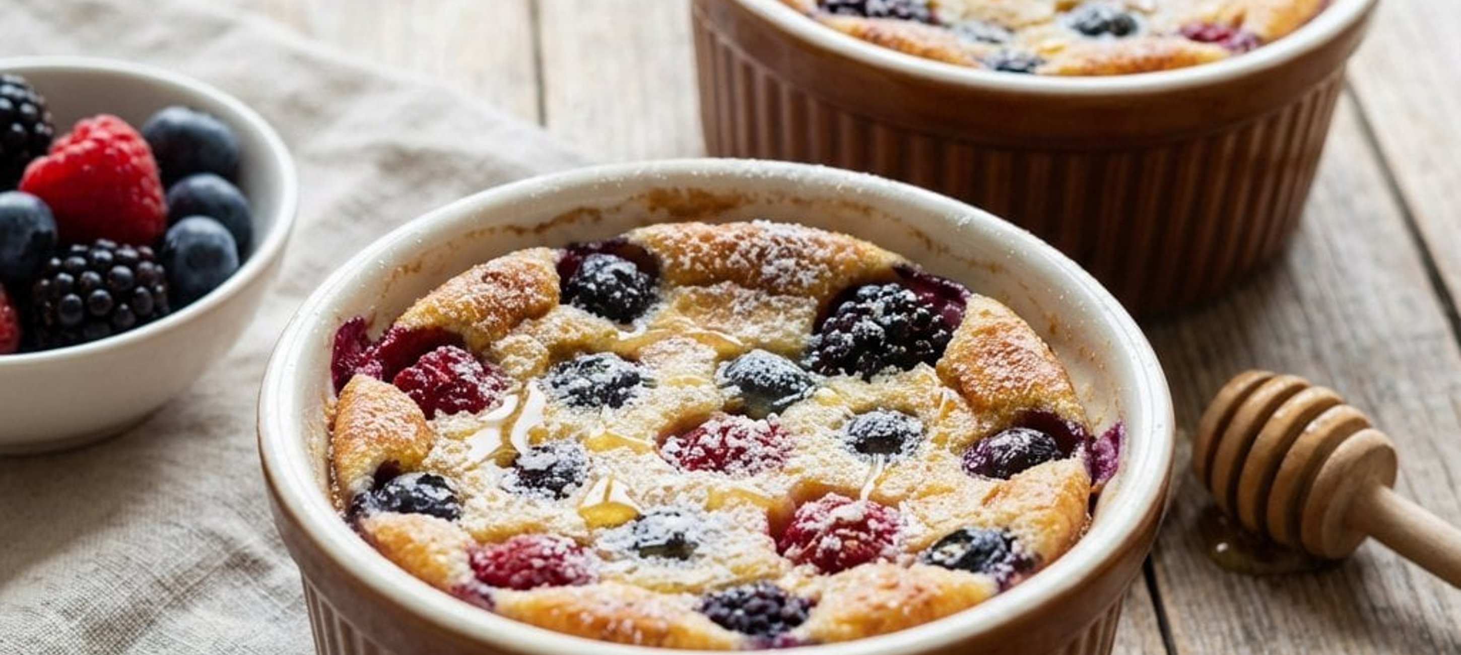 Servieren Sie den Clafoutis am besten noch warm, eventuell mit einem Klecks griechischem Joghurt oder einer Kugel Vanilleeis für die extra Portion Genuss.