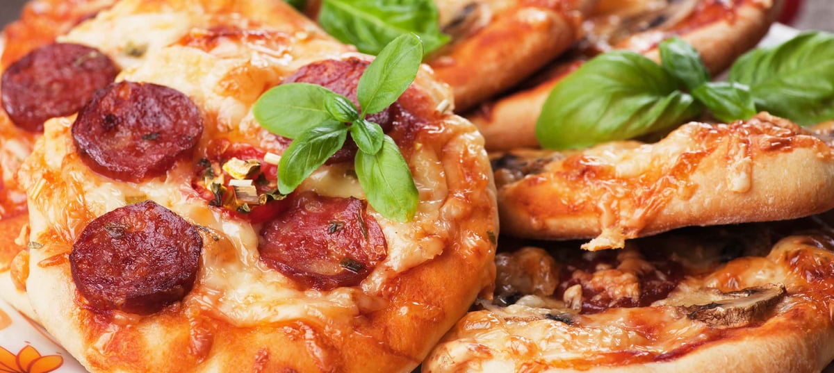 - 6Alle Pizzen mit der Tomatensoße bestreichen, den veganen Streukäse darauf verteilen und dann mit den restlichen Toppings belegen.