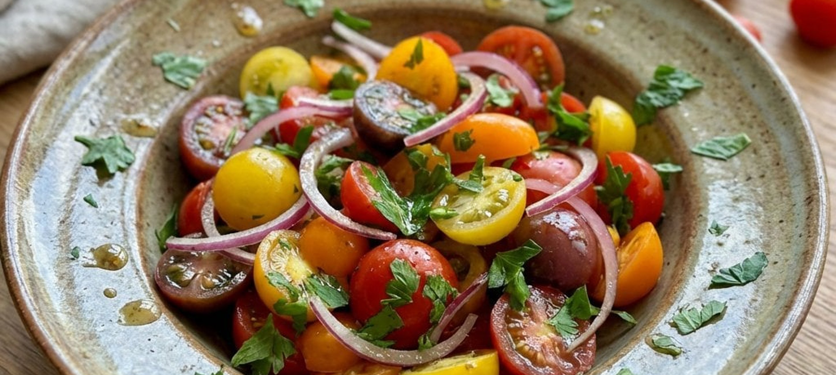 - 2Die Tomaten in Stücke oder Spalten schneiden. In die Schüssel geben und mit dem Dressing übergießen. Zum Schluss das Öl unterrühren.