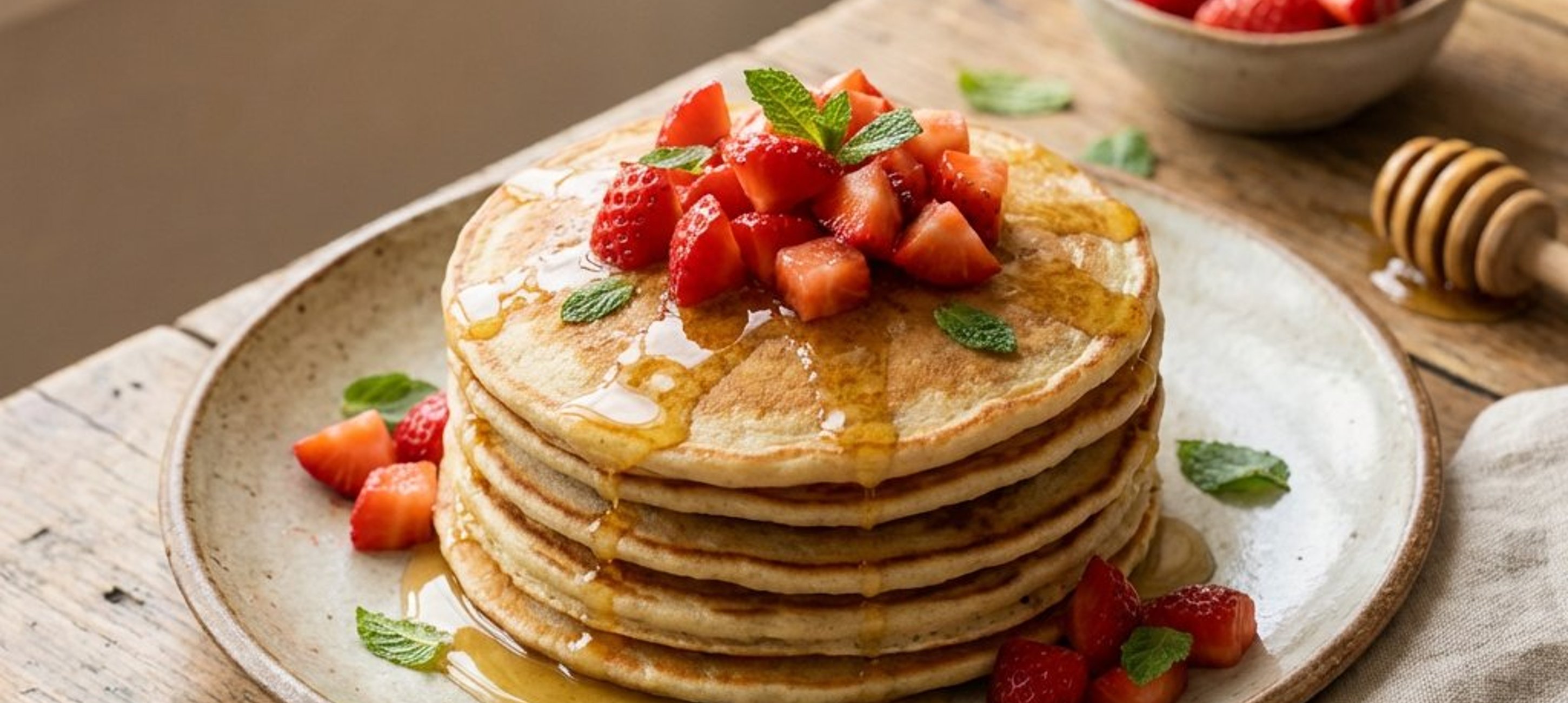 Servieren Sie die Pfannkuchen mit einem Klecks griechischem Joghurt für eine extra Portion Protein!
