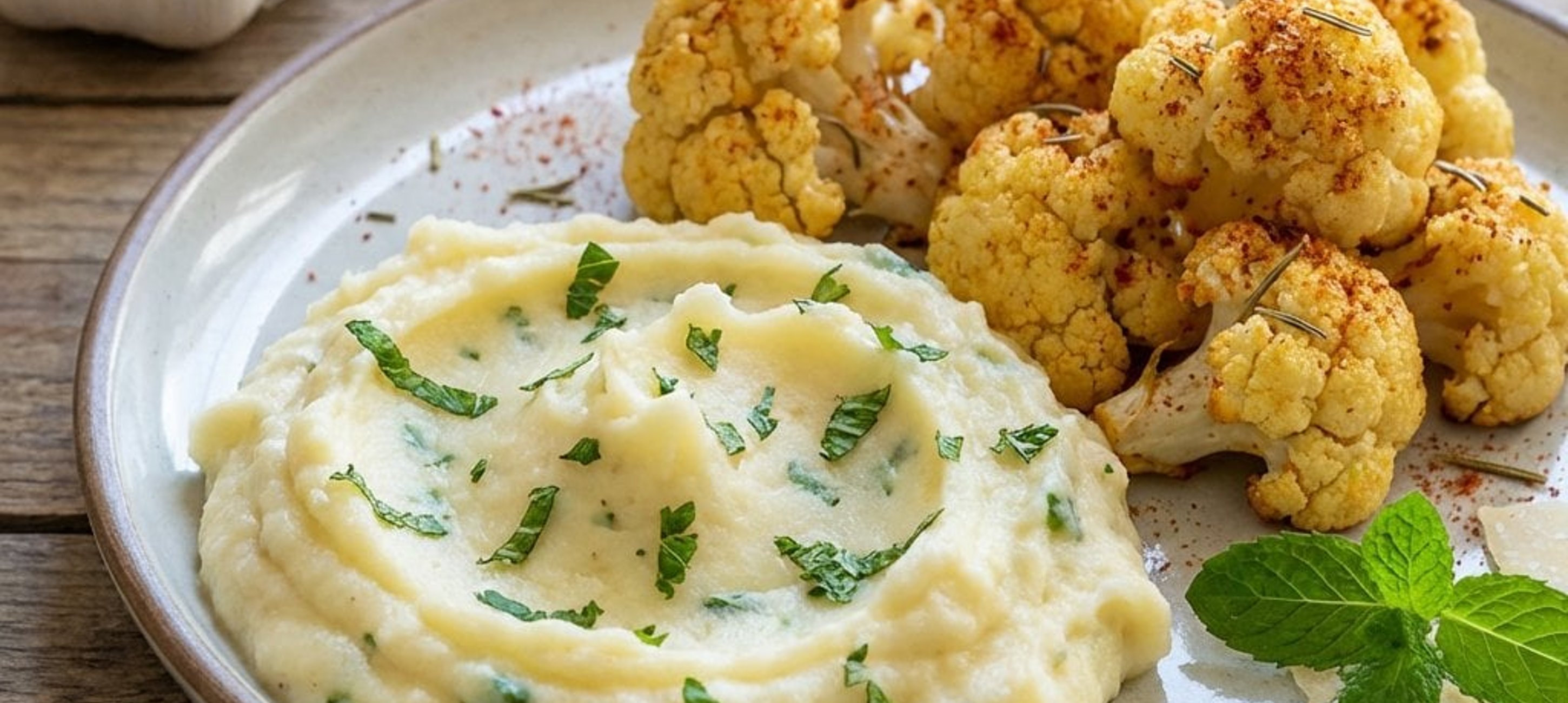 - 6Den gerösteten Blumenkohl auf Tellern anrichten, den Kartoffelstampf dazu geben und servieren.