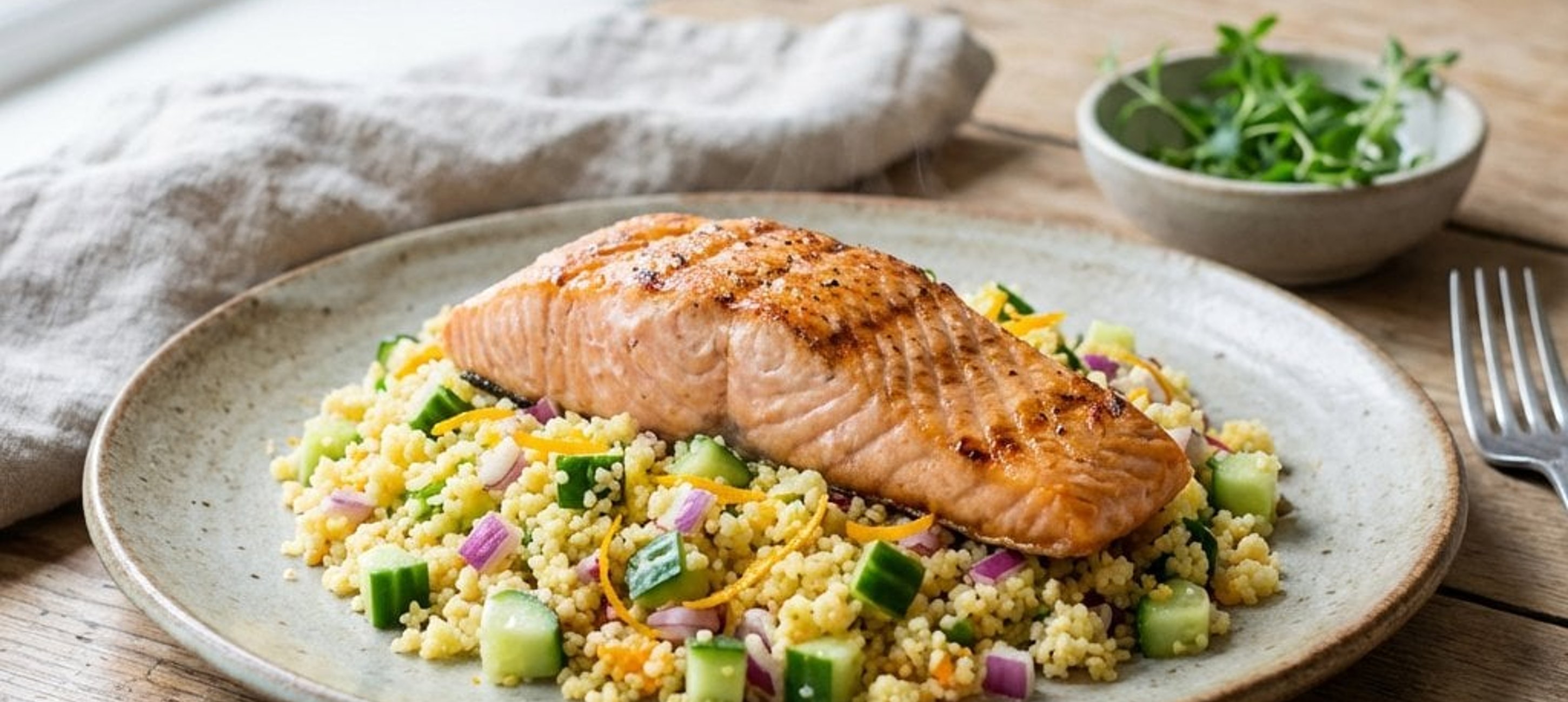 Ein kleiner Tipp: Für ein noch intensiveres Aroma können Sie den Couscous statt mit Wasser auch mit heißer Gemüsebrühe aufgießen. Servieren Sie den Lachs mit einer extra Spalte Orange für die perfekte Frische!