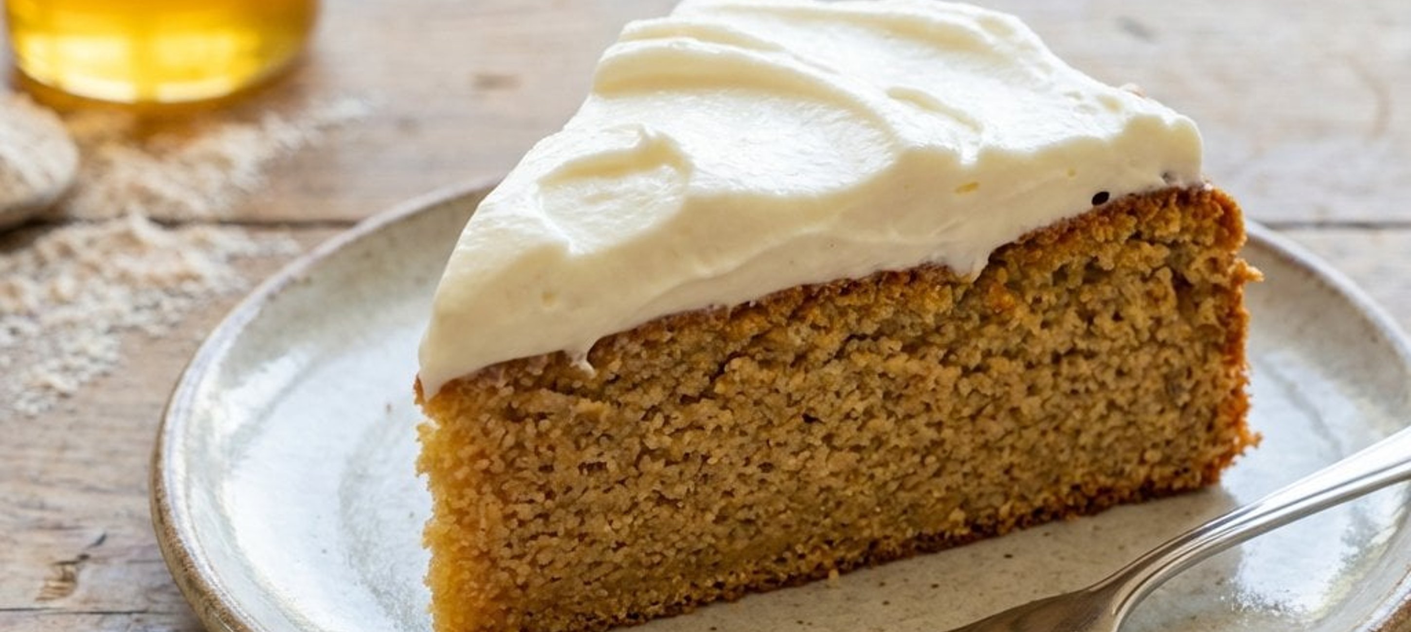 - 2Das Dinkelmehl in eine große Schüssel sieben. Eier, flüssigen Honig, Vanille-Proteinpulver, Mineralwasser und Rapsöl hinzufügen. Mit einer Küchenmaschine oder einem Schneebesen zu einem glatten, leicht flüssigen Teig verrühren. Den Teig in die vorbereitete Form füllen und ca. 50–55 Minuten bei 180–185 °C backen.