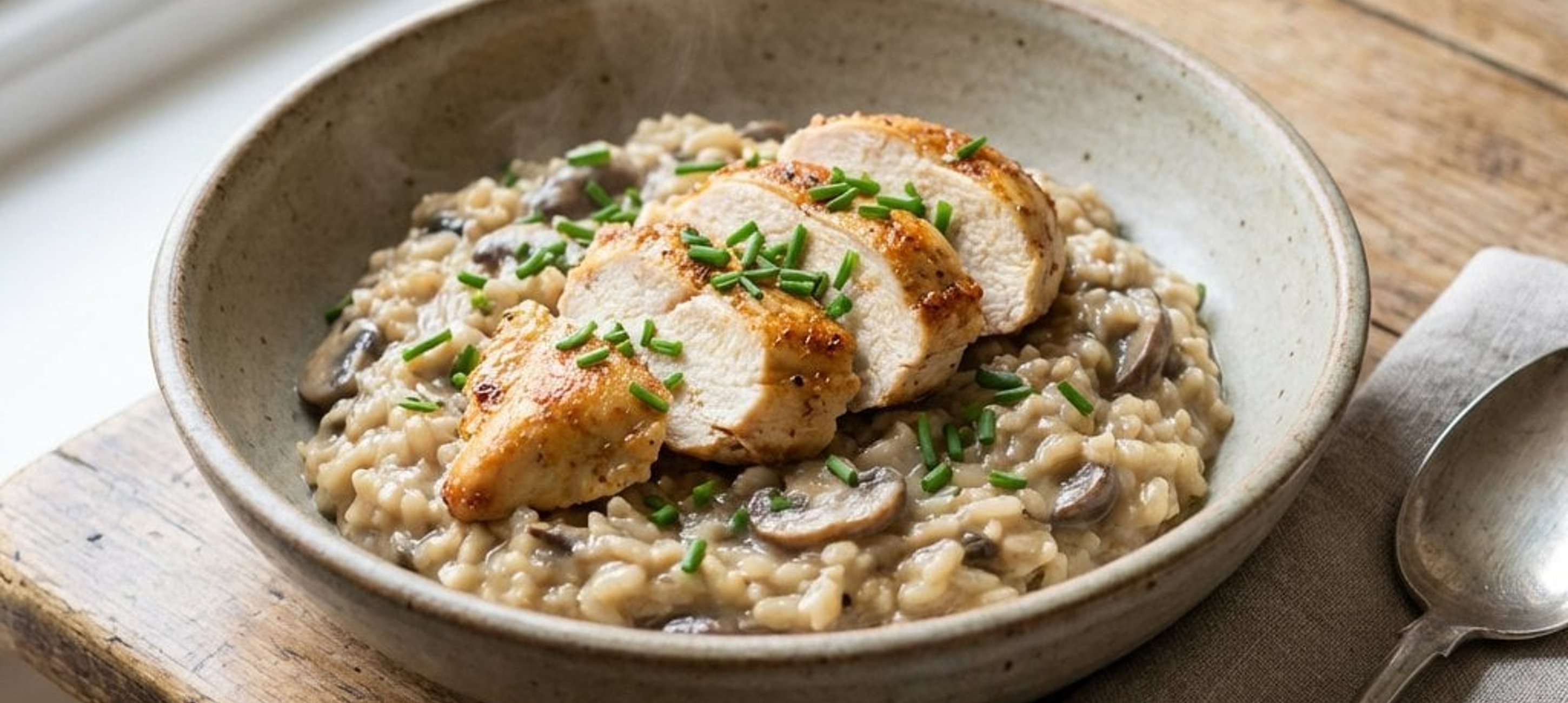 - 5Das Risotto mit den Hähnchenstreifen und dem Schnittlauch garniert servieren.