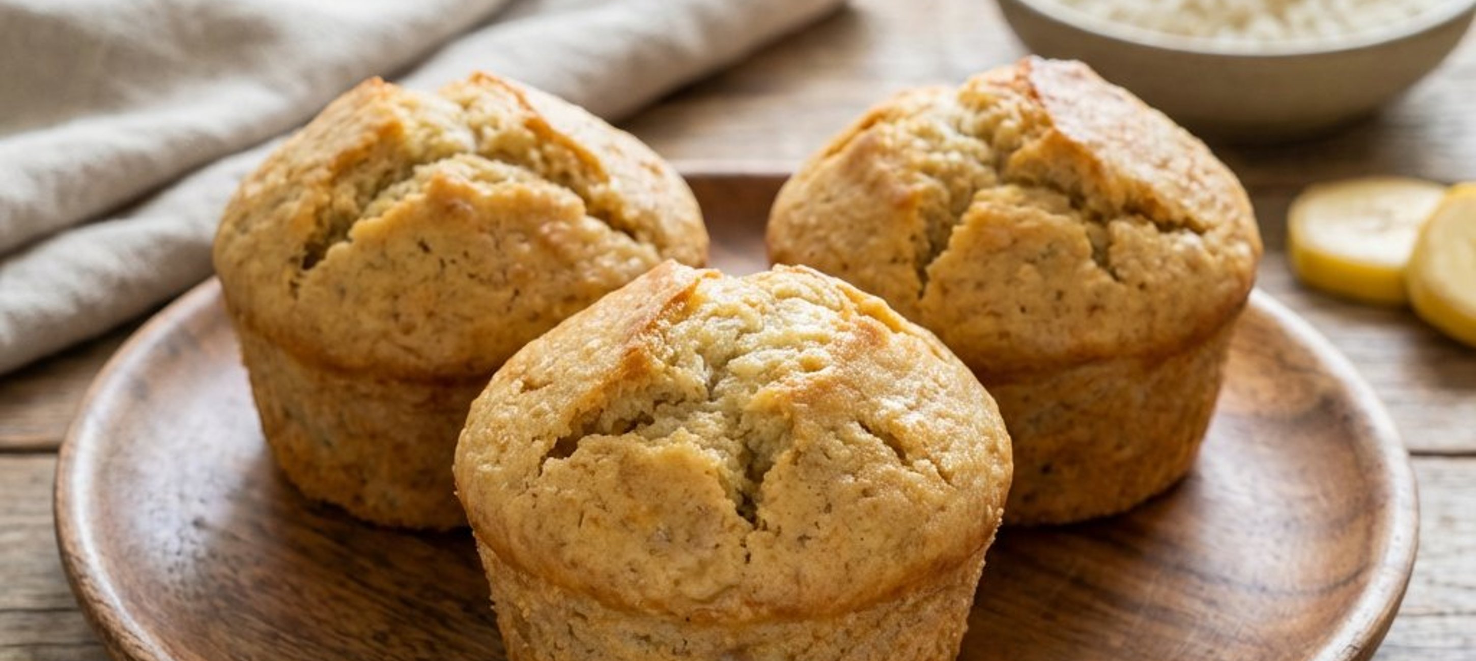 - 2Die Banane in einer großen Schüssel mit einer Gabel fein zerdrücken. Den gekochten Jasminreis, die Eier, Maisstärke, Mandelmilch, Backpulver, Vanilleextrakt und den Zitronenabrieb hinzufügen und alles zu einem gleichmäßigen Teig verrühren.