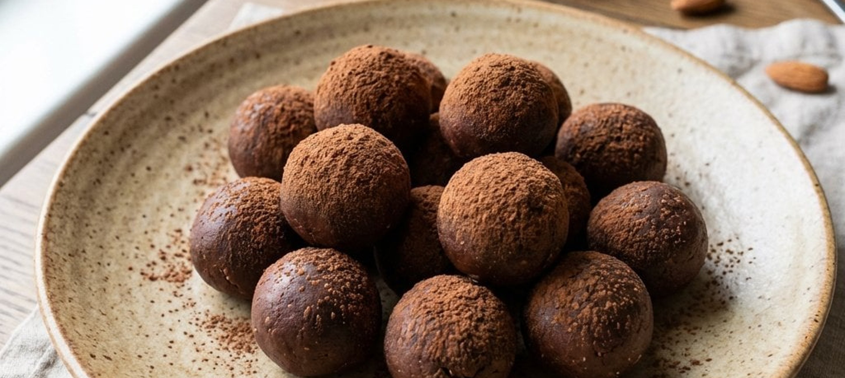 - 4Formen Sie aus dem abgekühlten Teig 12 gleich große Kugeln und wälzen Sie diese in den restlichen 5 g Backkakao. Die Schokoladenkugeln können sofort serviert werden.