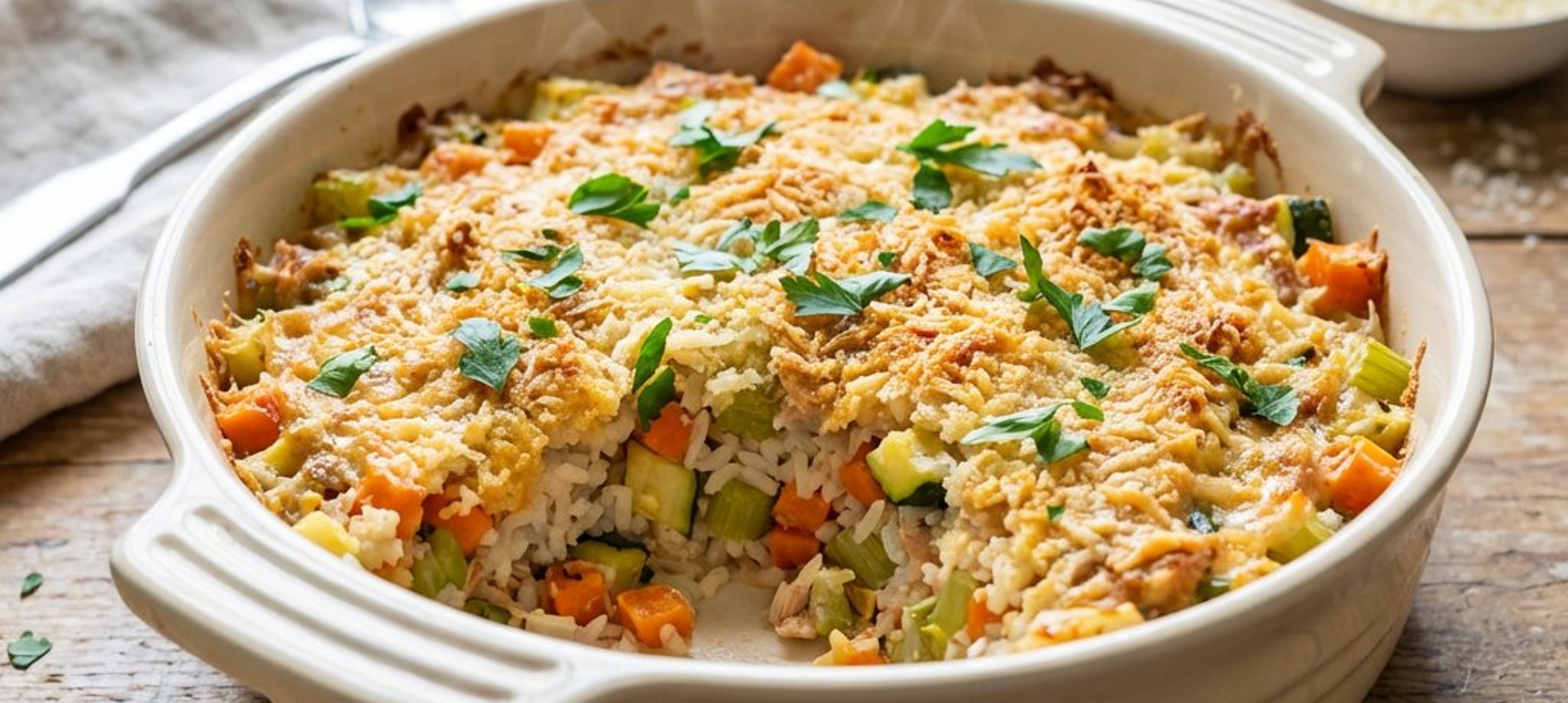 - 4Geben Sie die Mischung in die vorbereitete Auflaufform und backen Sie den Auflauf für 50–55 Minuten bei 185–190 °C im Ofen, bis er goldbraun ist.