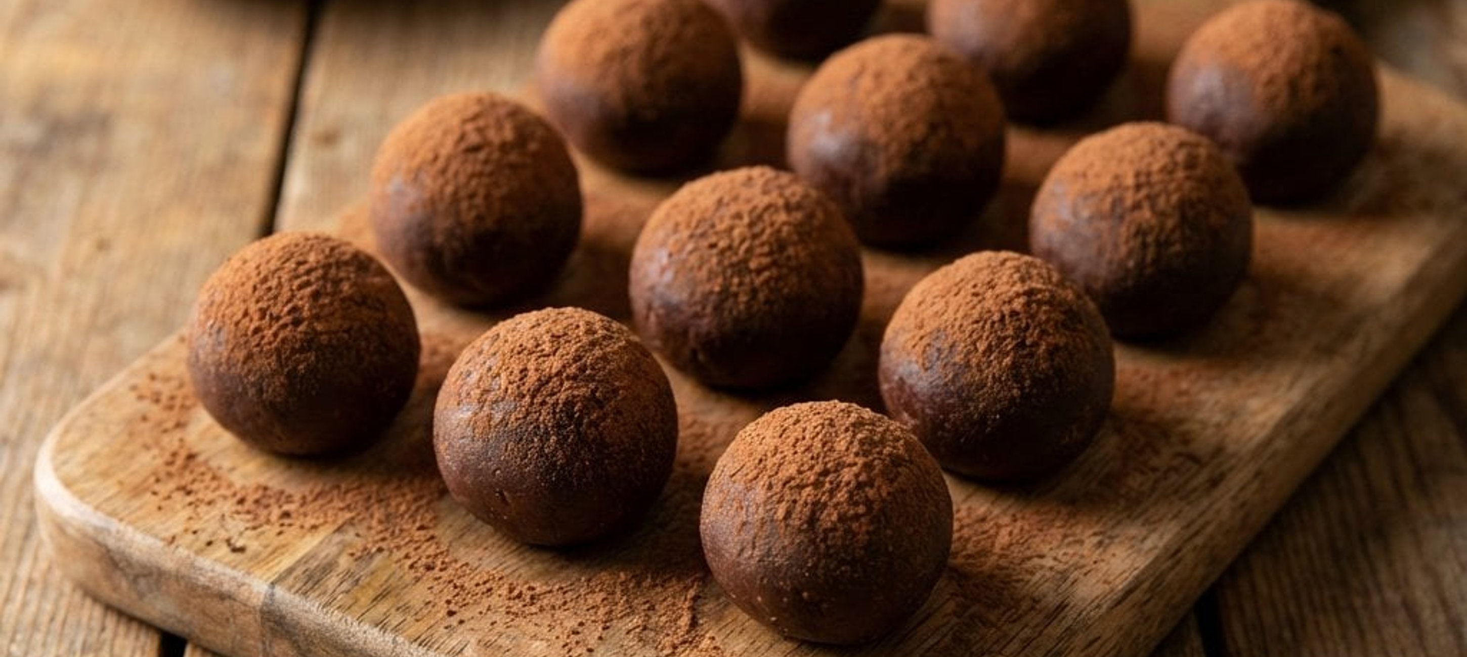 - 4Formen Sie aus dem gekühlten Teig 12 gleich große Kugeln und wälzen Sie diese in den restlichen 5 g Backkakao. Die Kugeln können sofort serviert werden.