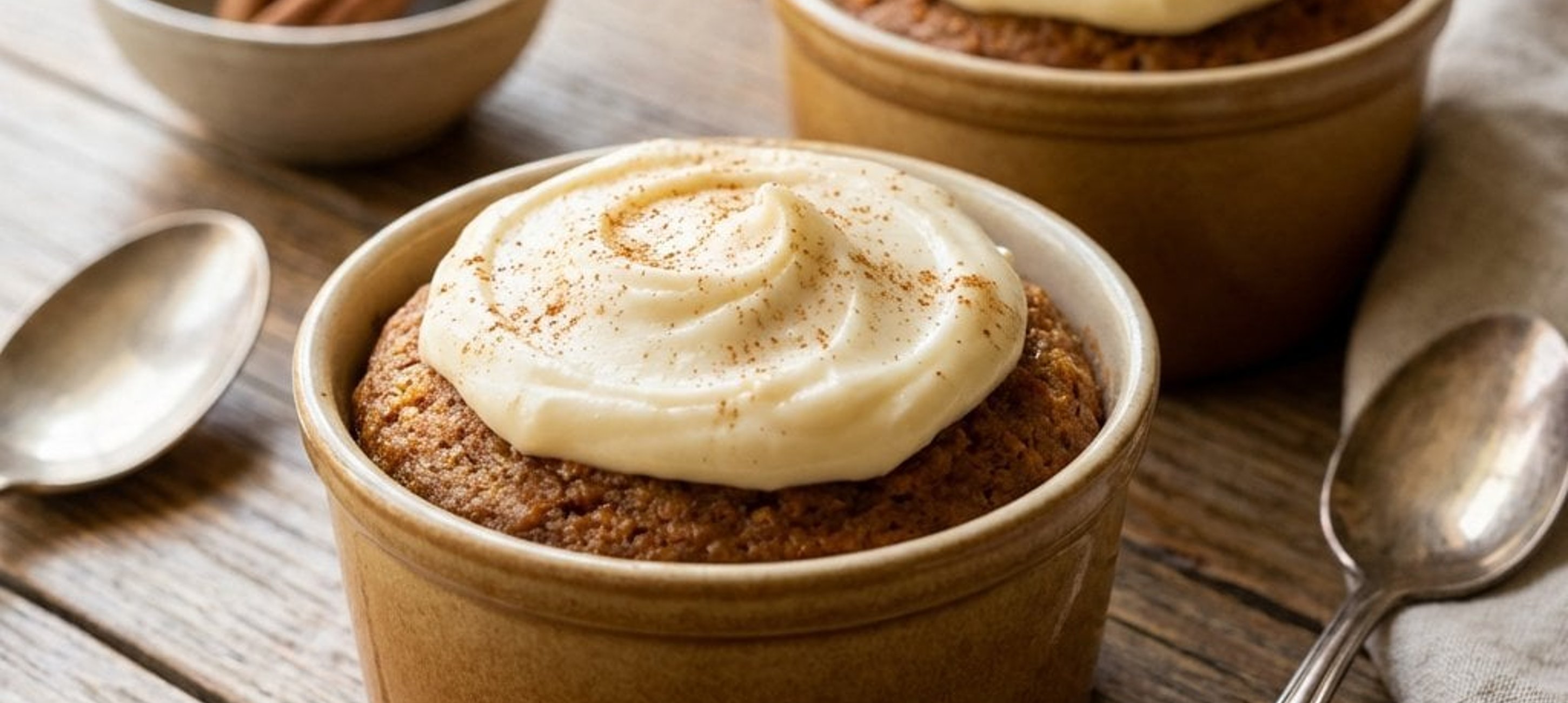 - 2Den Teig zubereiten: Die Karotte schälen und fein in die vorbereitete Schüssel reiben. Dinkelvollkornmehl, Backpulver, Ei, gemahlenen Zimt, Muskatnuss, Ingwer, die Hälfte des Honigs (1 EL) und eine Prise Salz hinzufügen und zu einem glatten Teig verrühren. Den Teig gleichmäßig in die Förmchen füllen und im vorgeheizten Ofen bei 170–175 °C ca. 25–30 Minuten backen. Die Küchlein aus dem Ofen nehmen und mindestens 30 Minuten in den Förmchen abkühlen lassen.