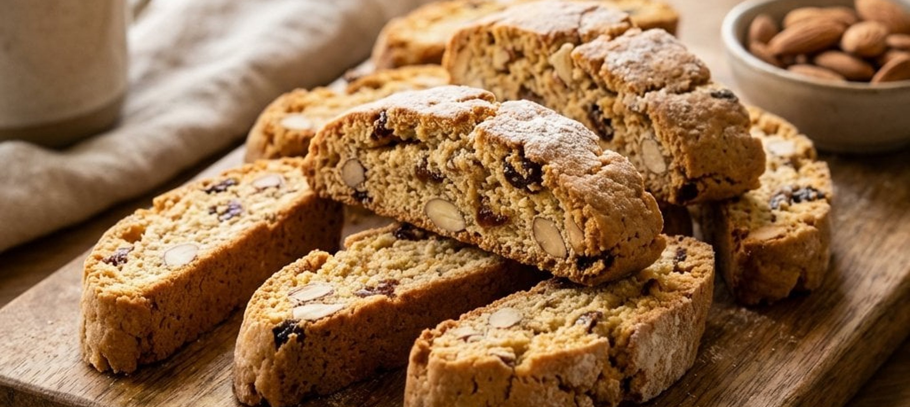 - 4Lassen Sie die Biscotti nach dem Backen mindestens 10 Minuten abkühlen, damit sie ihre typische Knusprigkeit entwickeln, und servieren Sie sie dann.