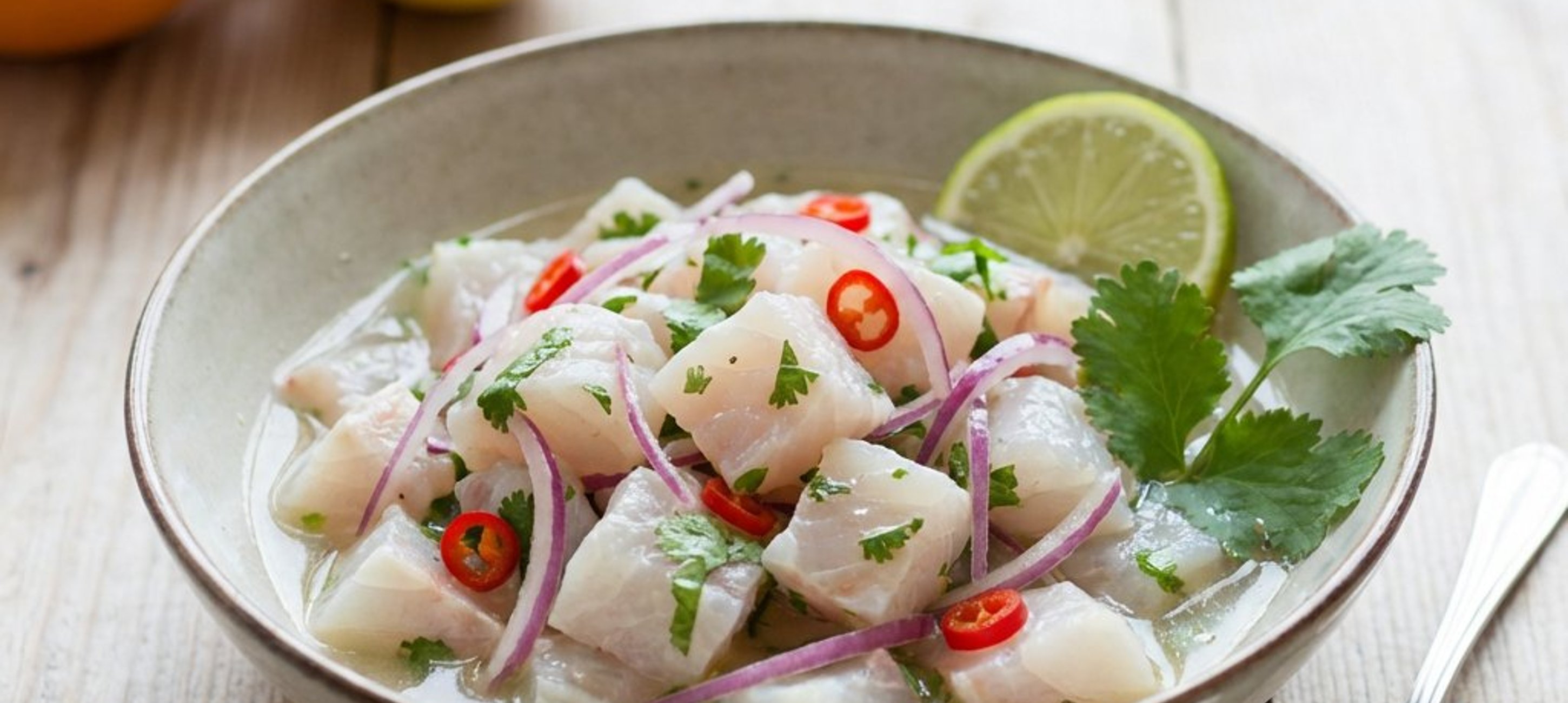 - 4Das vorbereitete Gemüse und den Koriander vorsichtig unter den Fisch mischen. Mit Salz abschmecken. Die Marinade (Leche de Tigre) im Gericht belassen, alles gut vermengen und sofort servieren.