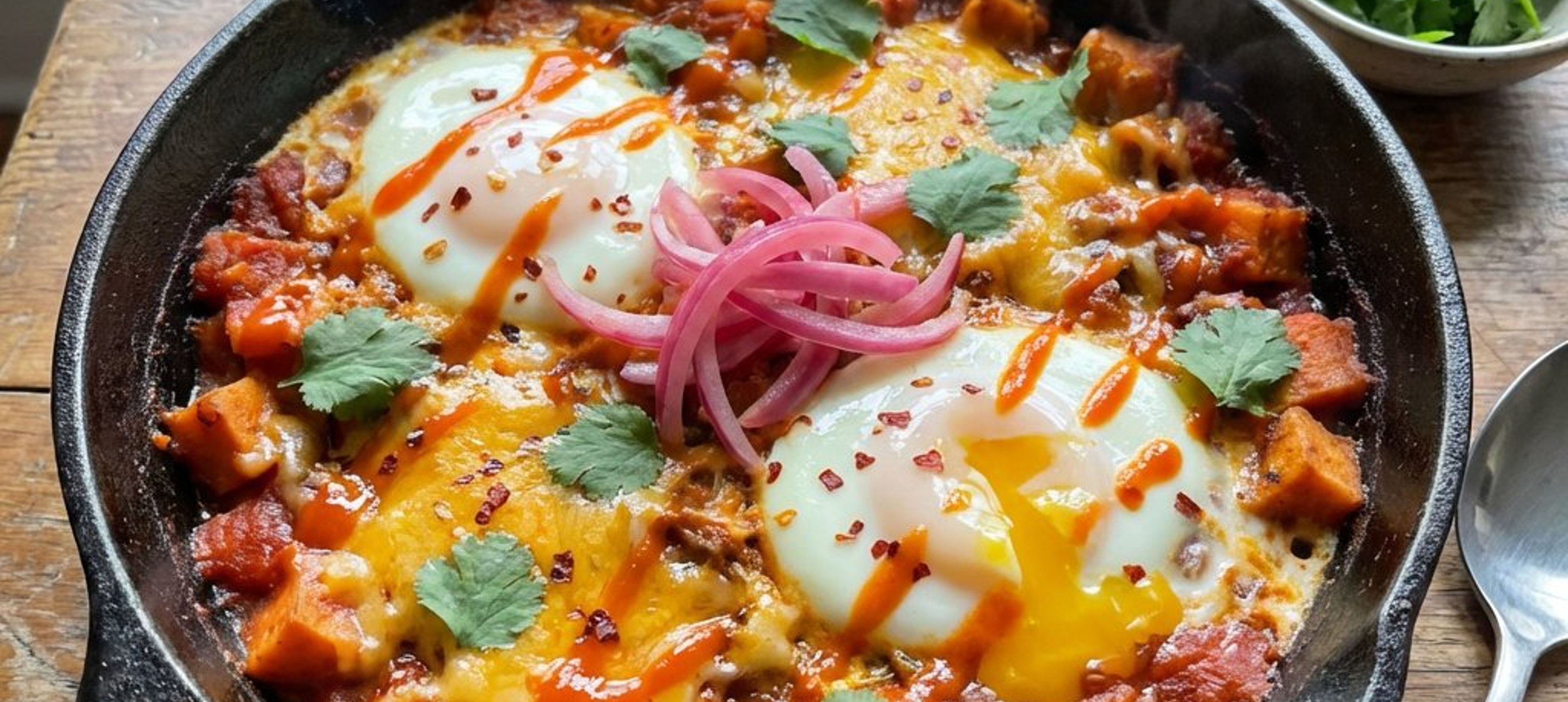 - 3In der Zwischenzeit die Butter in einem kleinen Topf schmelzen und die Sriracha-Sauce unterrühren. Die fertige Shakshuka mit der Sriracha-Butter beträufeln und sofort servieren.