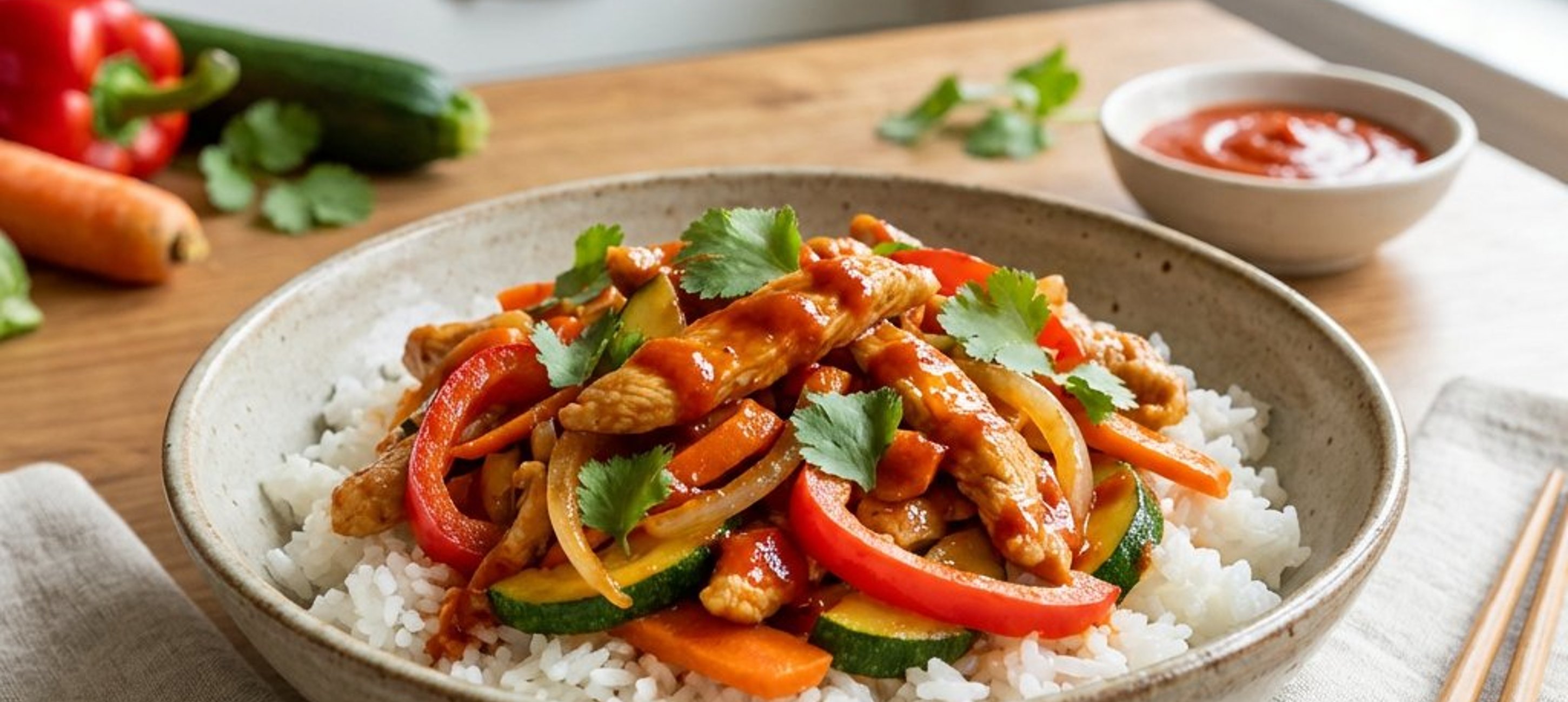 - 5Die pikanten Putenstreifen mit Reis servieren und mit frisch gehacktem Koriander garnieren.