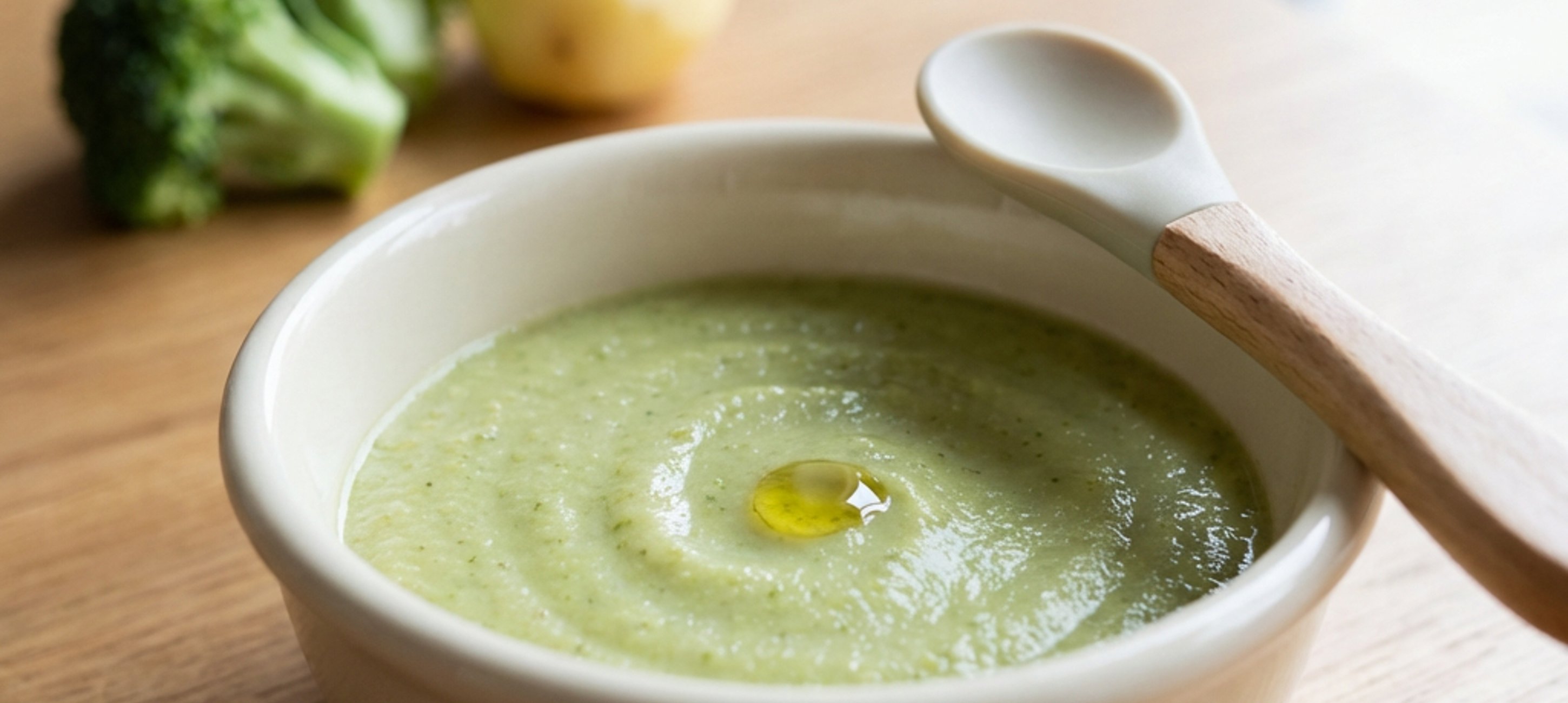 - 4Alle Zutaten pürieren und einen Löffel Rapsöl dazugeben. Um die Konsistenz des Breis zu regulieren, das beiseite gestellte Kochwasser dazugeben, bis der Brei die gewünschte Konsistenz hat.