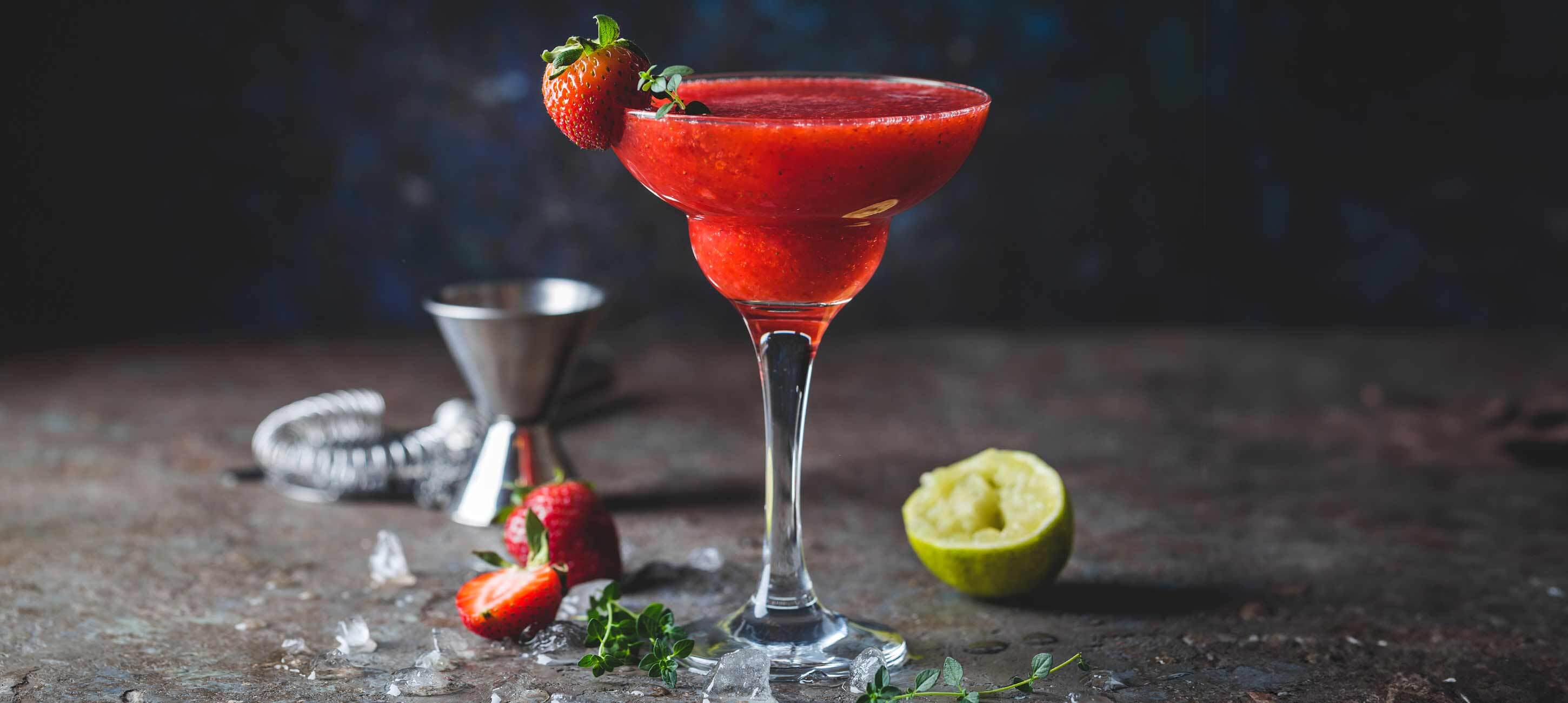 - 1Das Wasser und den Zucker in einen Topf geben und unter Rühren aufkochen lassen. So lange köcheln lassen, bis sich der Zucker aufgelöst hat, dann auskühlen lassen. Die Erdbeeren waschen, den Strunk entfernen und halbieren.