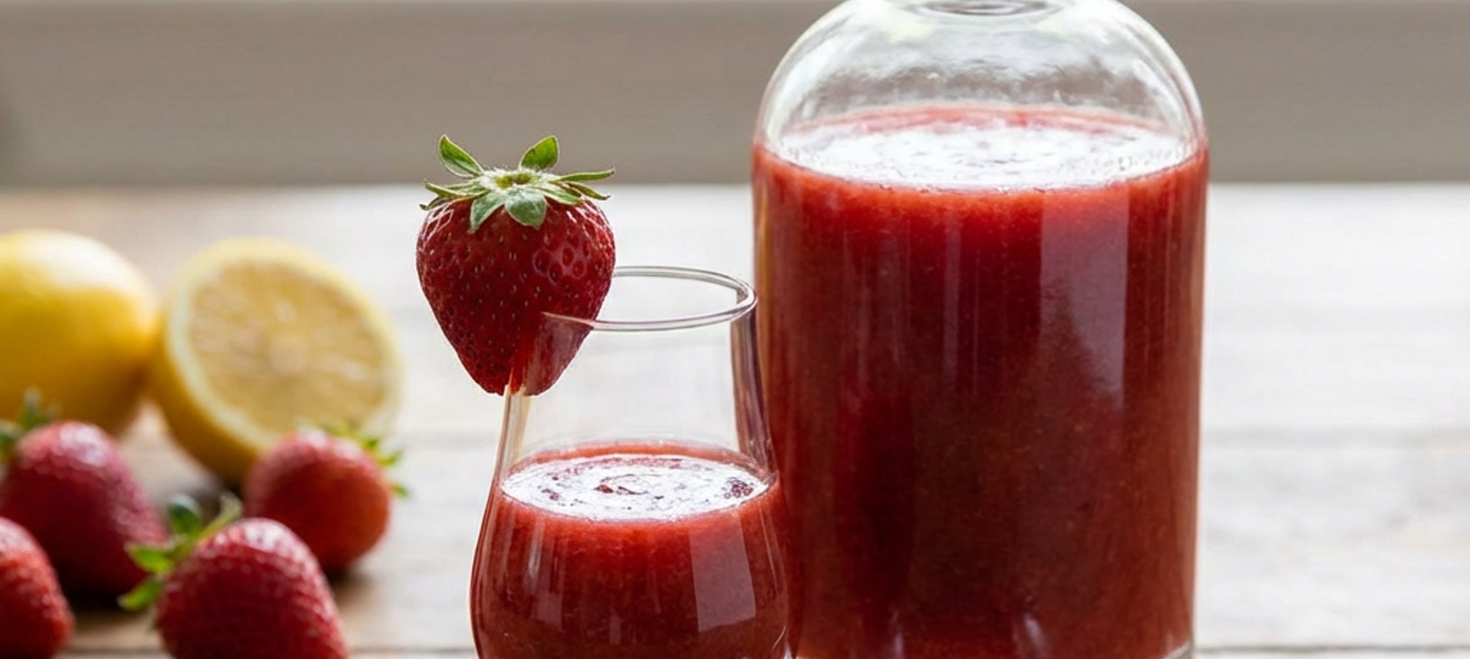 - 2Die Erdbeeren pürieren und den Zitronensaft unterrühren.
