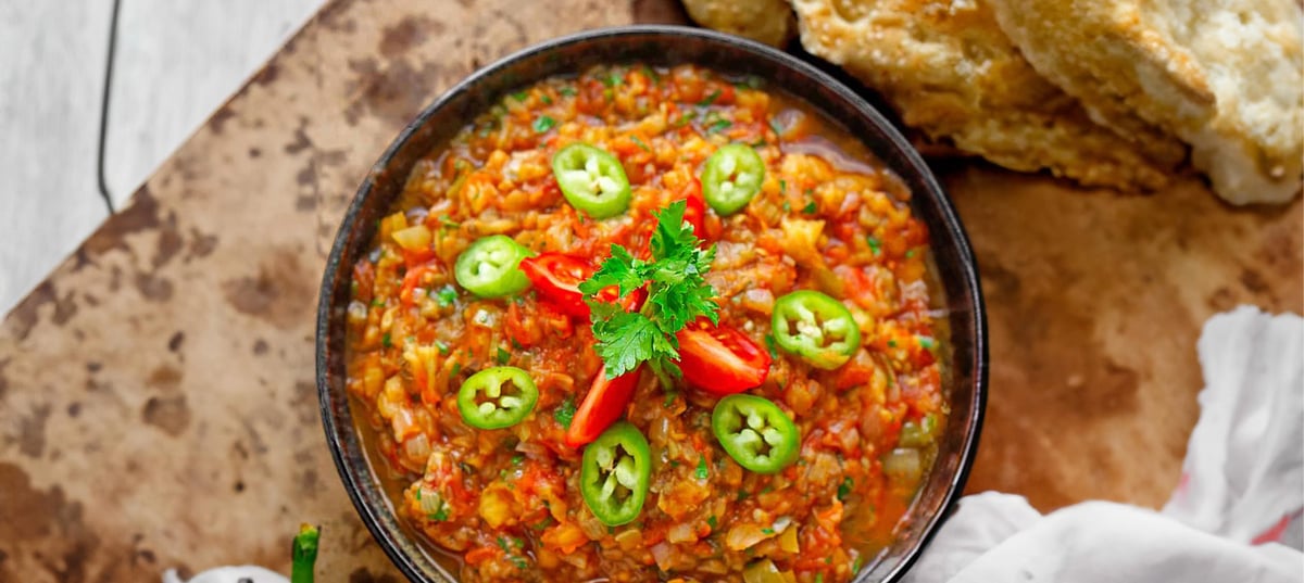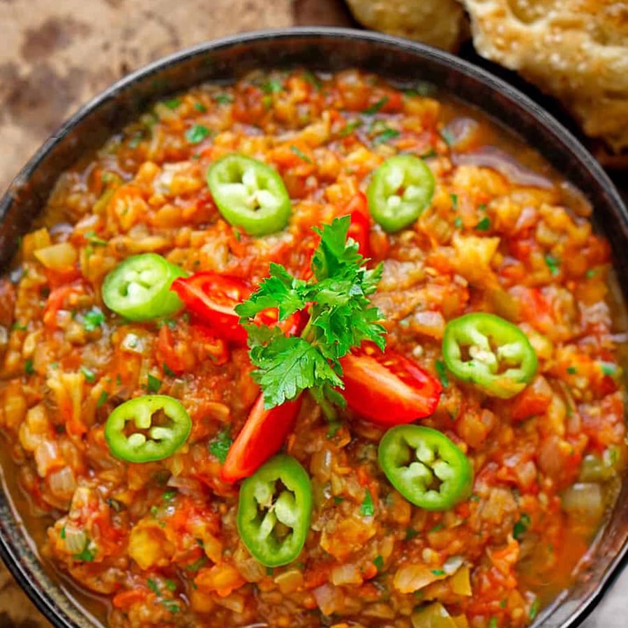 Mit geräuchertem Paprikapulver und Salz abschmecken, sollte das Antep Söğürme noch nicht intensiv rauchig und fruchtig schmecken.