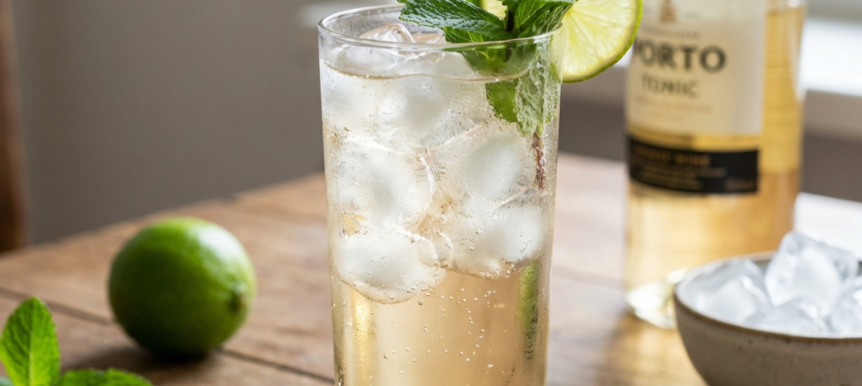 - 1Fülle dein Longdrinkglas mit Eiswürfeln. Gib nun 5 cl Portwein und 15 cl Tnonic Water dazu.
