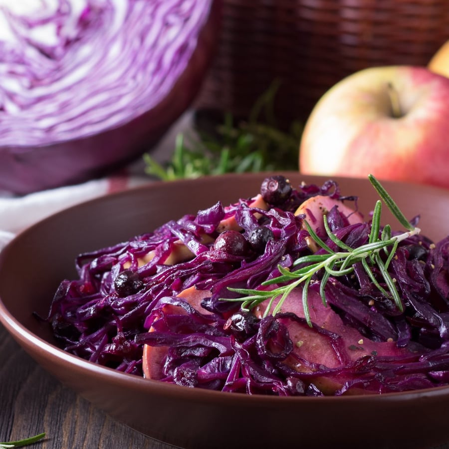 Der Kohl sollte nicht weichgekocht werden, sondern noch etwas knackig sein. Falls das Kraut beim Kochen zu viel Flüssigkeit aufnimmt, kannst du mit Rotwein oder Apfelsaft noch weiter verdünnen.