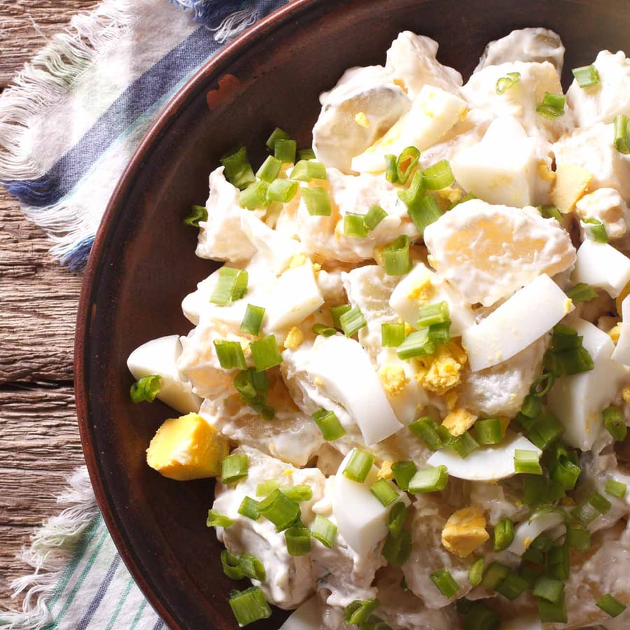 Um einige Kalorien zu sparen, kannst du die Mayonnaise auch durch Naturjoghurt ersetzen. Lagere deinen Kartoffelsalat außerdem stets kühl, weil dieser recht hitzeempfindlich ist. Teile daher den Salat lieber auf mehrere kleine Schüsseln auf, die du nach und nach aus dem Kühlschrank herausholst. So ist eine längere Haltbarkeit gewährleistet.