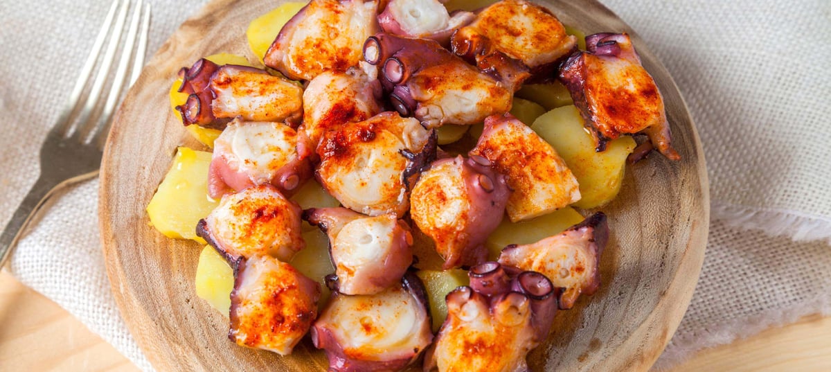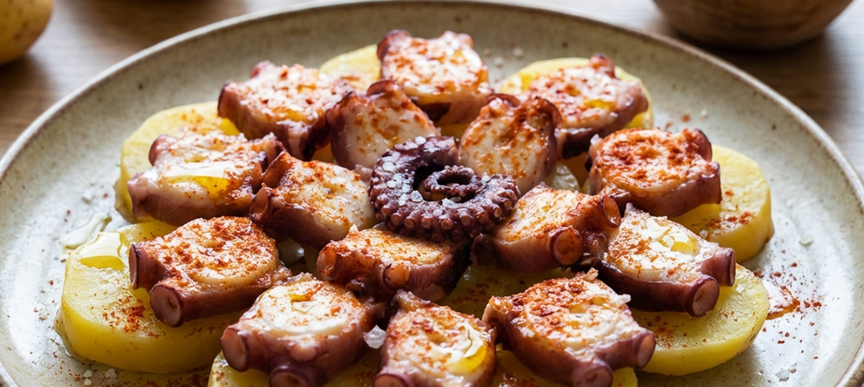 - 4Die Oktopusscheiben auf den Kartoffeln verteilen.