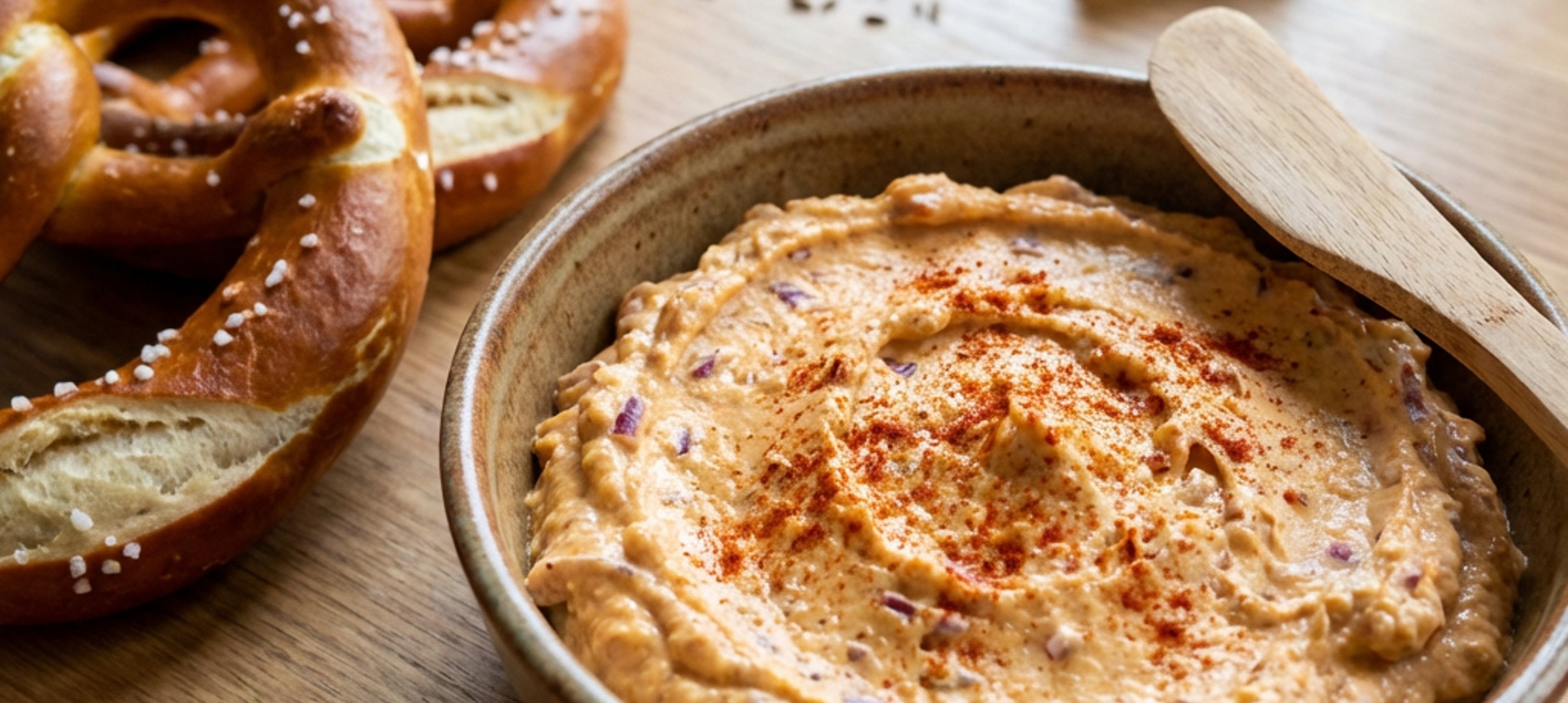 Noch besser schmeckt der vegane Obazda, wenn er schon einen Tag im Kühlschrank durchziehen konnte.