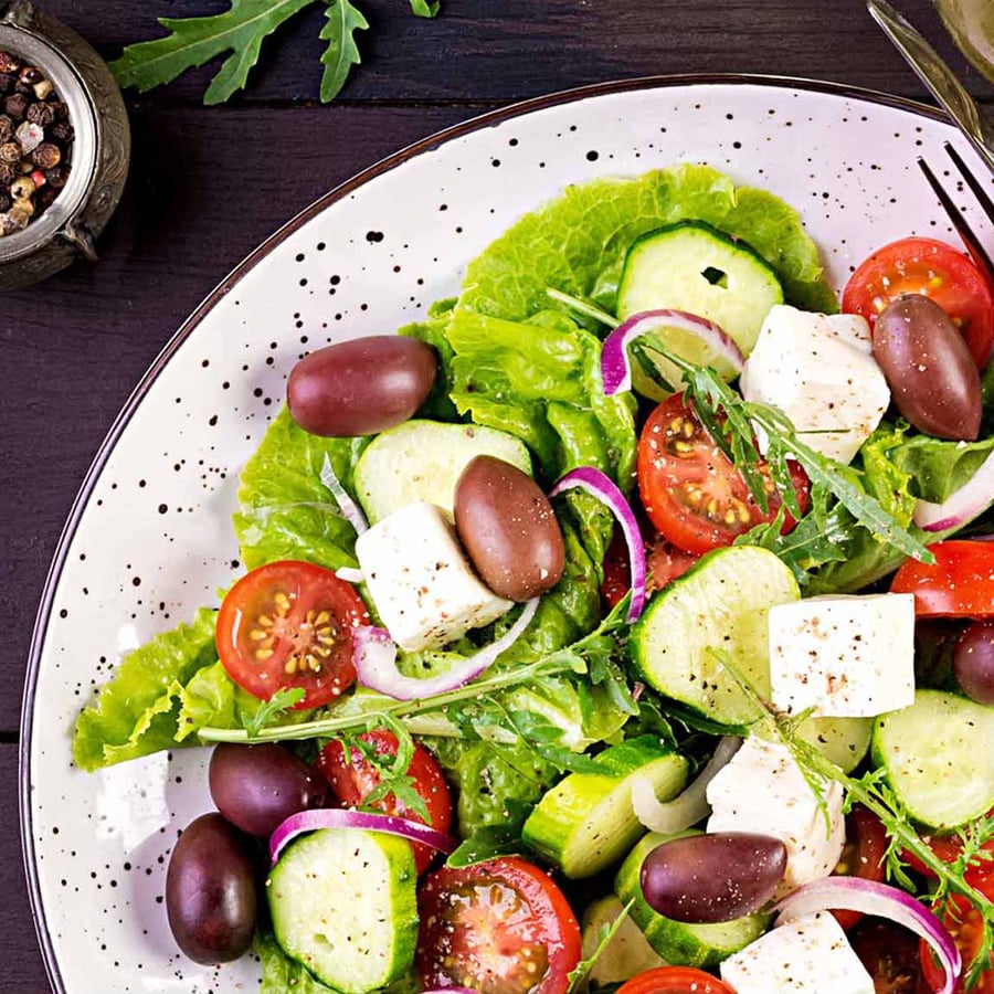 Du kannst deinen Griechischen Salat mit weiteren Zutaten ideal kulinarisch erweitern. Hartgekochte Eier, Kapern, eingelegte Kichererbsen oder Bohnen heben deinen Salat auf das nächste Level. Als Beilage empfehlen wir dir geröstetes Fladenbrot.