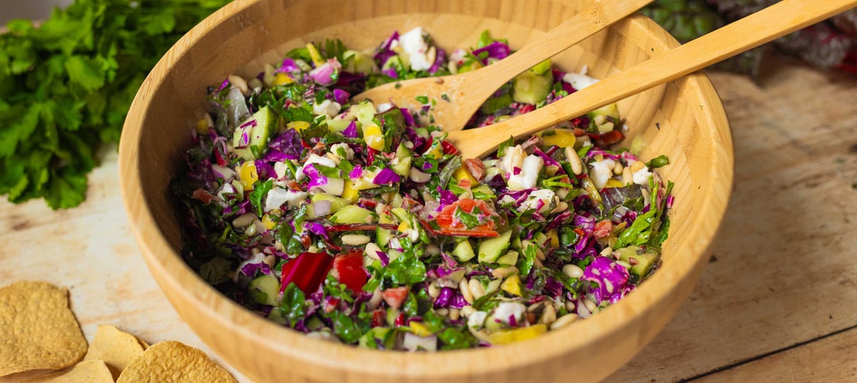 - 3Anschließend alle geschnittenen Zutaten in eine Salatschüssel geben und gut vermengen.