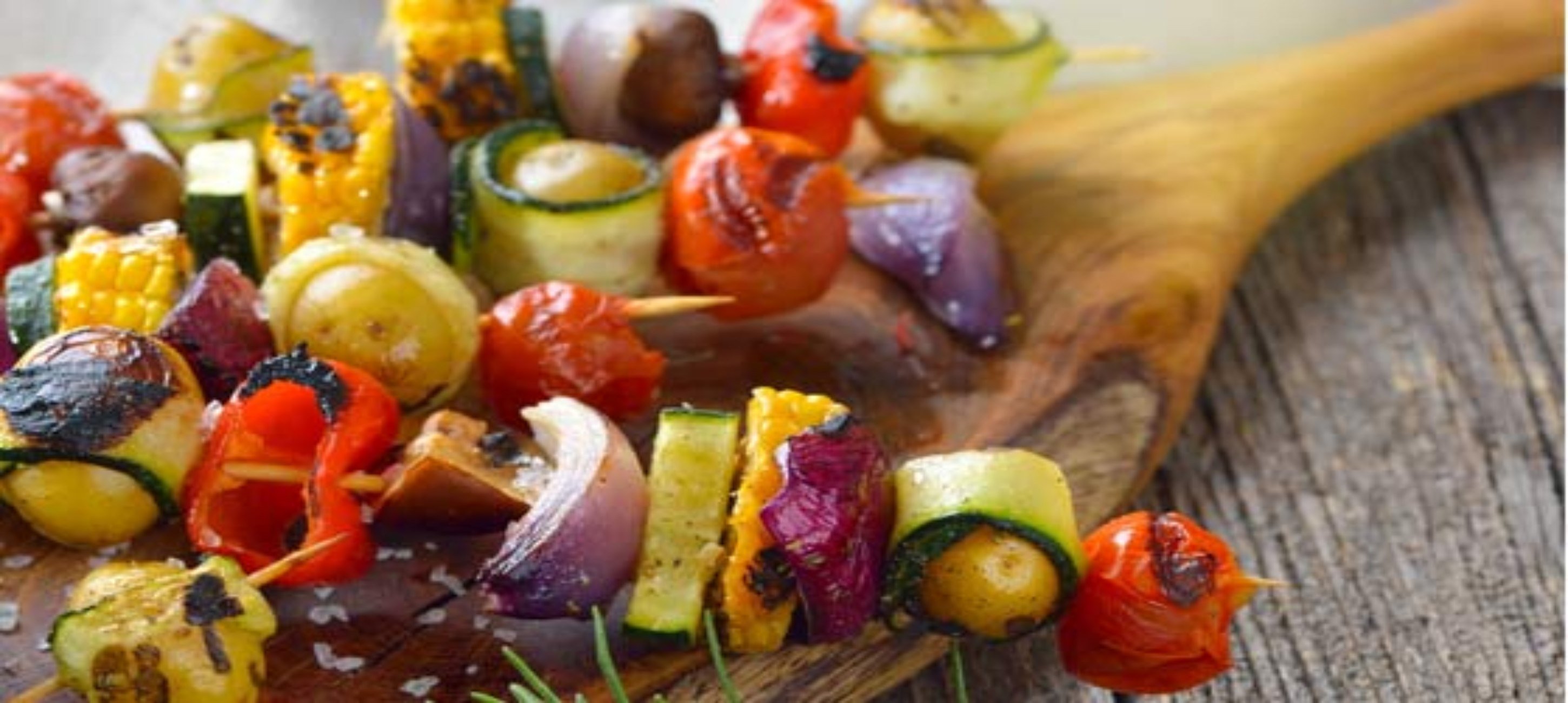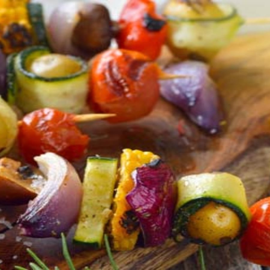 Wenn du Holzspieße verwendest, weiche diese 30 Minuten in kaltem Wasser ein, damit sie nicht auf dem Grill hängen bleiben. Du kannst übrigens auch andere Leckereien wie Mais, Spargel, Pilze, Tofu oder Halloumi-Käse aufspießen.