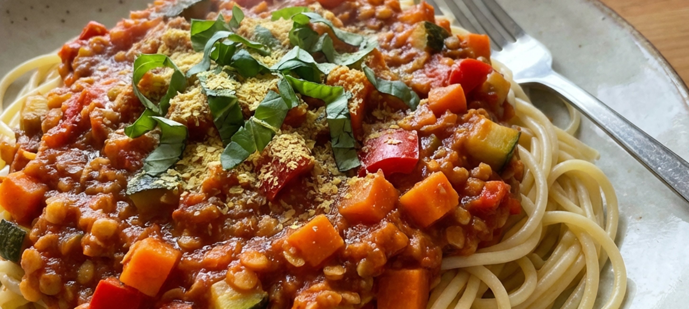 - 6Mit Salz und Pfeffer abschmecken und mit gehacktem Basilikum garnieren. Wer möchte, kann das Gericht mit einer veganen Käsealternative oder Hefeflocken toppen.