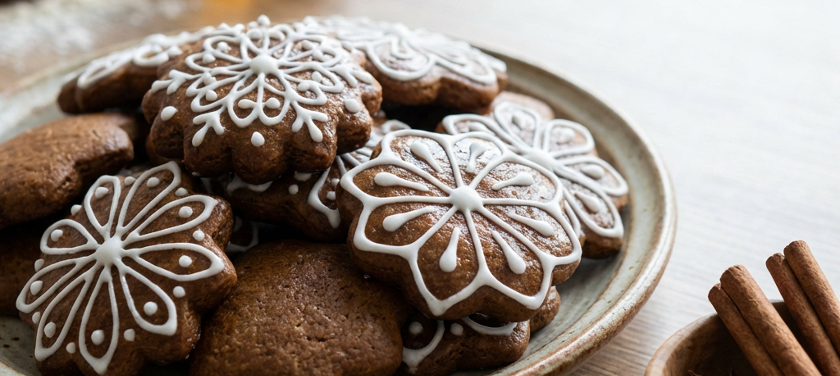 - 3Sobald die Lebkuchen abgekühlt sind, kann die Glasur vorbereitet werden. Das Eiweiß leicht mit einer Gabel verrühren, dann Puderzucker und Stärke hineinsieben und zu einer dicken, glänzenden Glasur rühren – sie sollte zähflüssig, aber noch vom Löffel fließend sein. Ist sie zu fest, etwas Zitronensaft hinzufügen; ist sie zu flüssig, etwas mehr Zucker einrühren. Etwas Glasur in einen Spritzbeutel füllen, eine kleine Ecke abschneiden und die Lebkuchen nach Belieben fein verzieren. Guten Appetit!