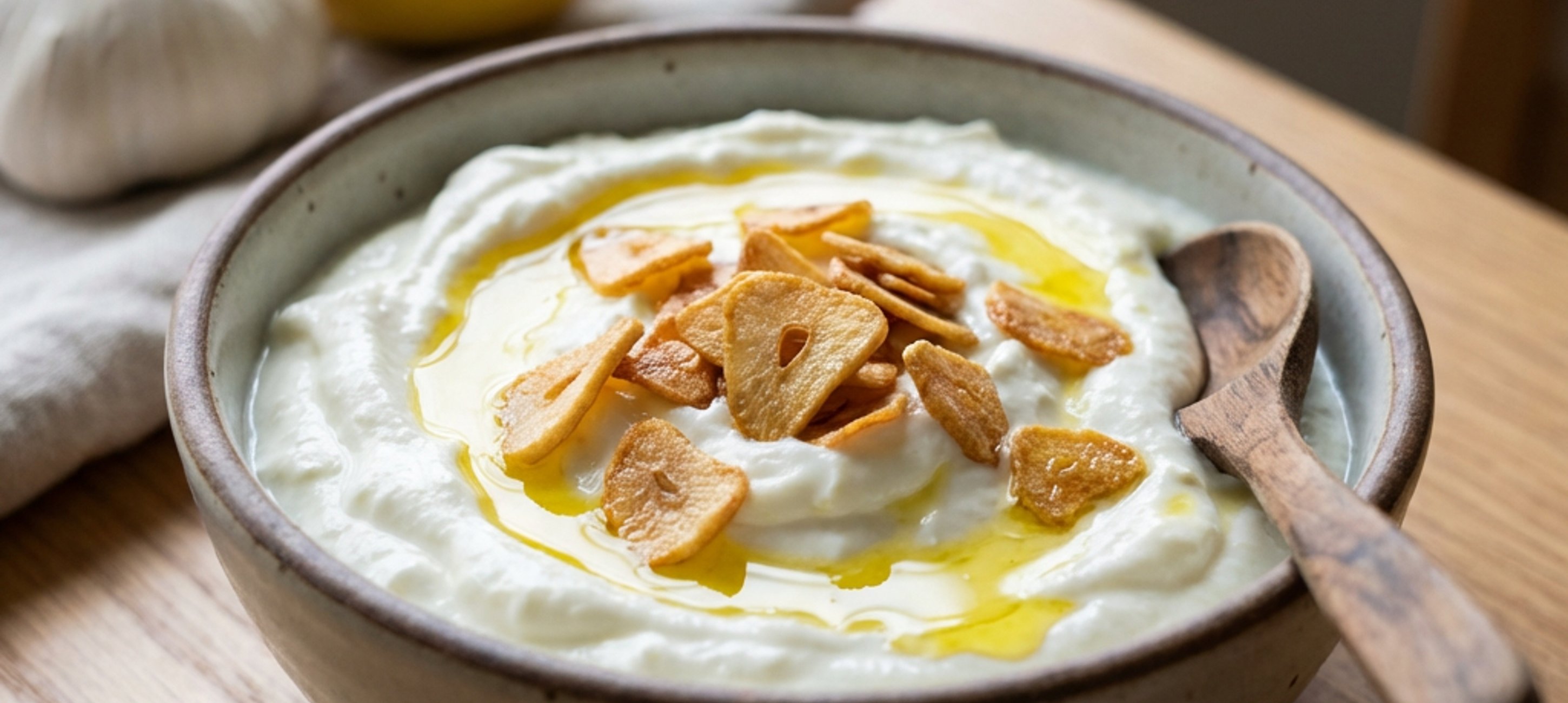 Dieses Rezept erinnert zwar an Tzatziki oder Aioli, ist aber viel einfacher zuzubereiten und passt ideal zu geröstetem Brot. Lass uns wissen, wie dein Knoblauch-Dip geschmeckt hat! #knusprküche