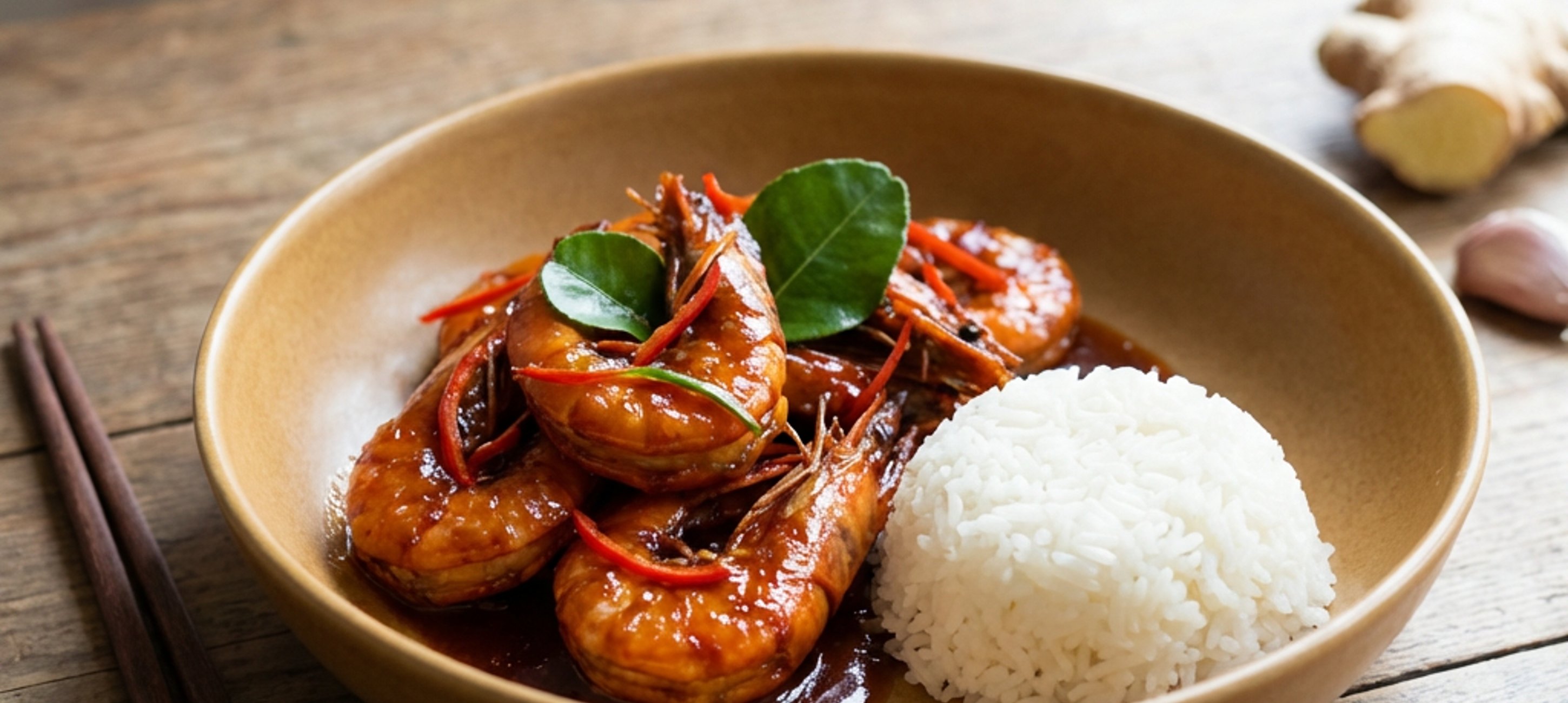- 2In einem Wok oder einer Pfanne Öl erhitzen, gehackten Knoblauch, Ingwer und Chili hinzufügen und kurz anbraten, bis es duftet. Die Garnelen hinzufügen, mit der vorbereiteten Sauce übergießen und alles gut vermengen.