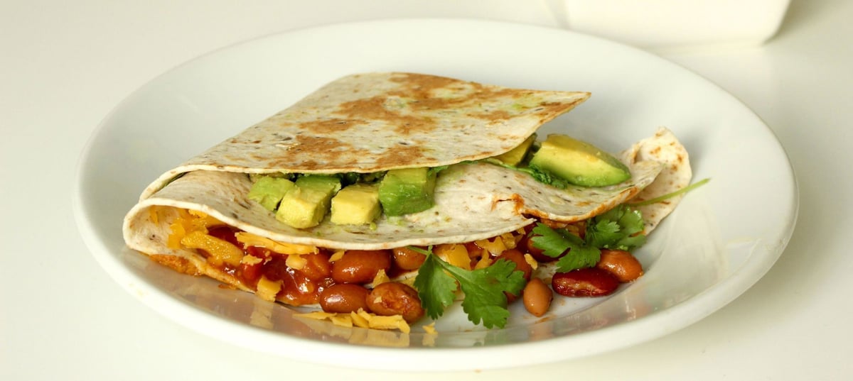 - 5Die eingewickelte Tortilla wird abschließend auf beiden Seiten in einer Pfanne oder auf einem Grill geröstet.