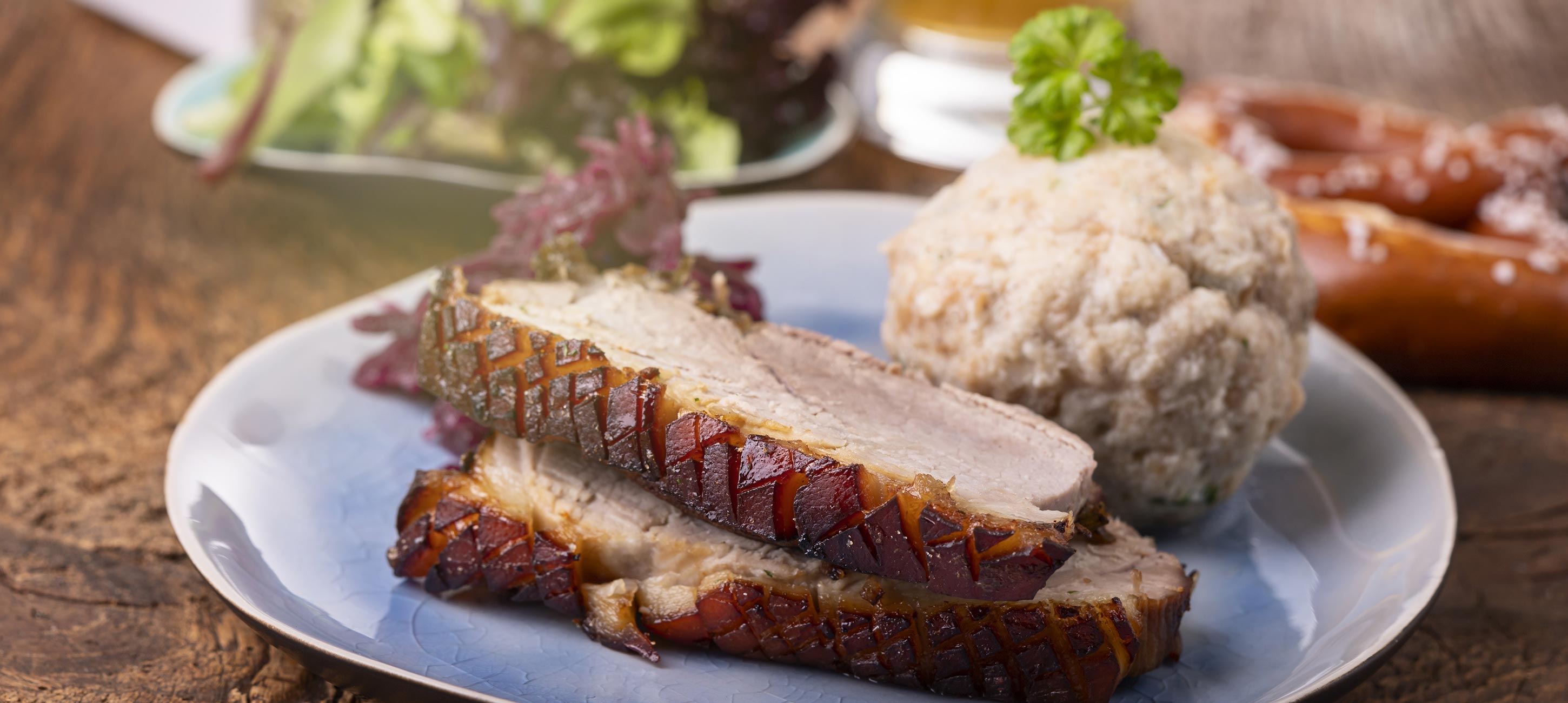 Achte beim Einschneiden der Schwarte darauf, dass du nur die Fettschicht und nicht das Fleisch einschneidest. Denn sonst verliert der Braten zu viel Fleischsaft und wird trocken.