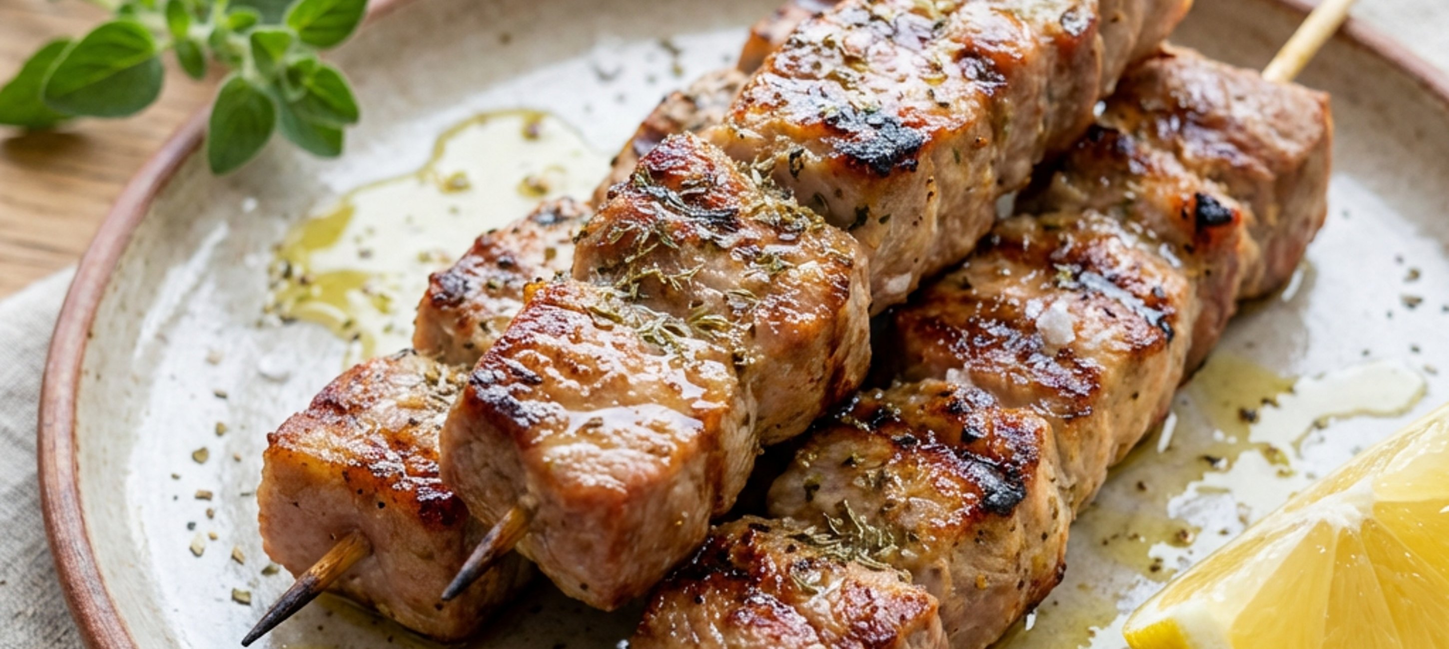 Wenn du gerade keinen Grill zur Verfügung hast, kannst du die Souvlaki-Spieße auch im Ofen backen. Lege einfach ein Backblech mit Alufolie aus, verteile die Spieße darauf und lasse alles auf höchster Grillstufe für ca. 5 Minuten grillen.