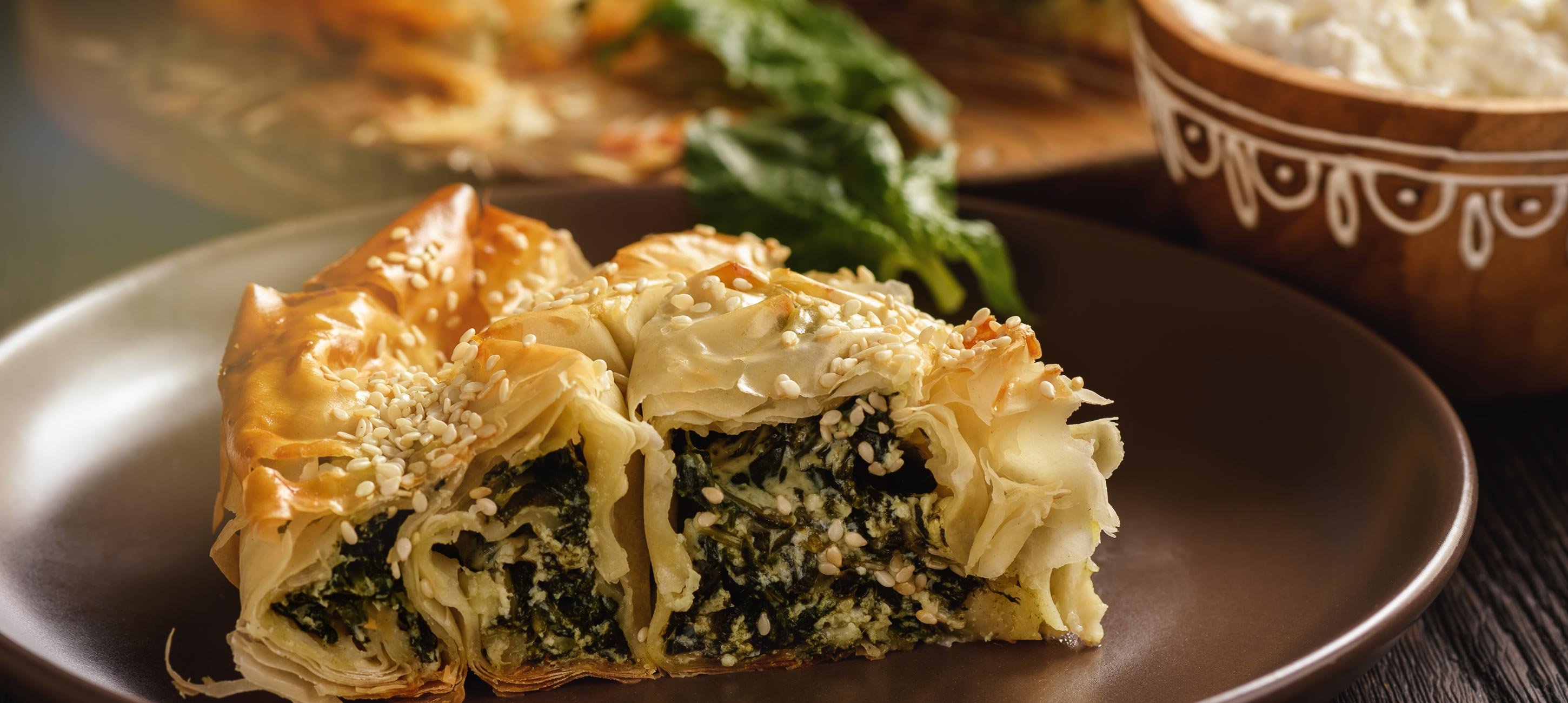- 2Zwiebel und Knoblauch feinhacken und im heißen Olivenöl einer beschichteten Pfanne andünsten. Minze waschen, trocknen, Blättchen entfernen und ebenfalls feinhacken. Die feingehackte Minze gemeinsam mit dem aufgetauten Spinat, den angebratenen Zwiebeln und Knoblauch sowie den Ricotta und den Eiern gut verrühren. Anschließend mit Salz, Pfeffer und Muskat würzen. Eigelb mit 2 Esslöffel Wasser verquirlen und beiseite stellen.