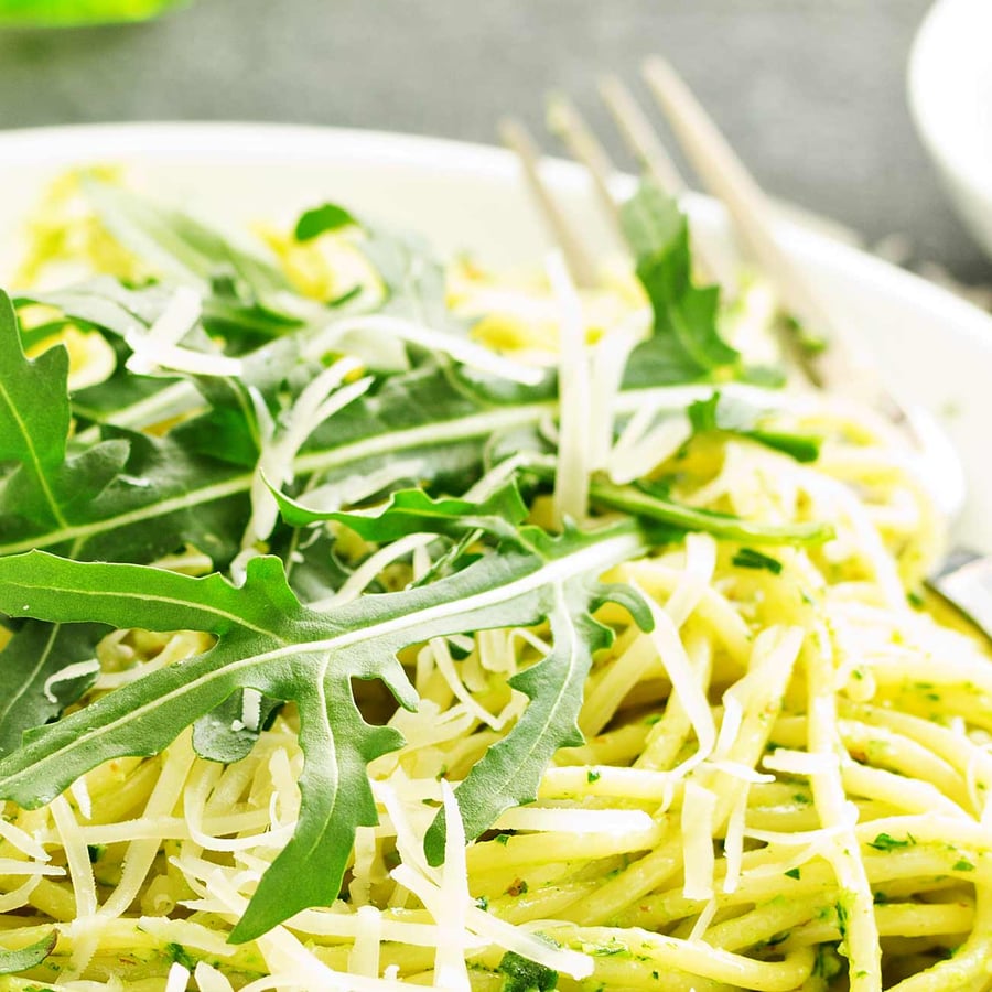 Schnell, schneller, Rucola-Spaghetti! Bereits in gut 15 Minuten steht dieser fixe Gaumenschmaus auf dem Tisch. Wenn doch alles im Leben so schnell und unkompliziert wäre...;) Lass uns wissen, wie dein Gericht geschmeckt hat! #knusprküche
