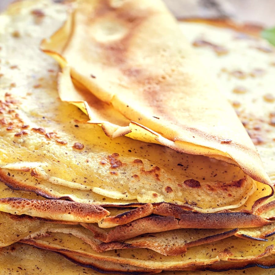 Du kannst Vollmilch auch durch vegane Soja- oder Mandelmilch ersetzen. Wenn du besonders fluffige Pfannkuchen möchtest, ersetze einen Teil der Milch durch kohlensäurehaltiges Mineralwasser.