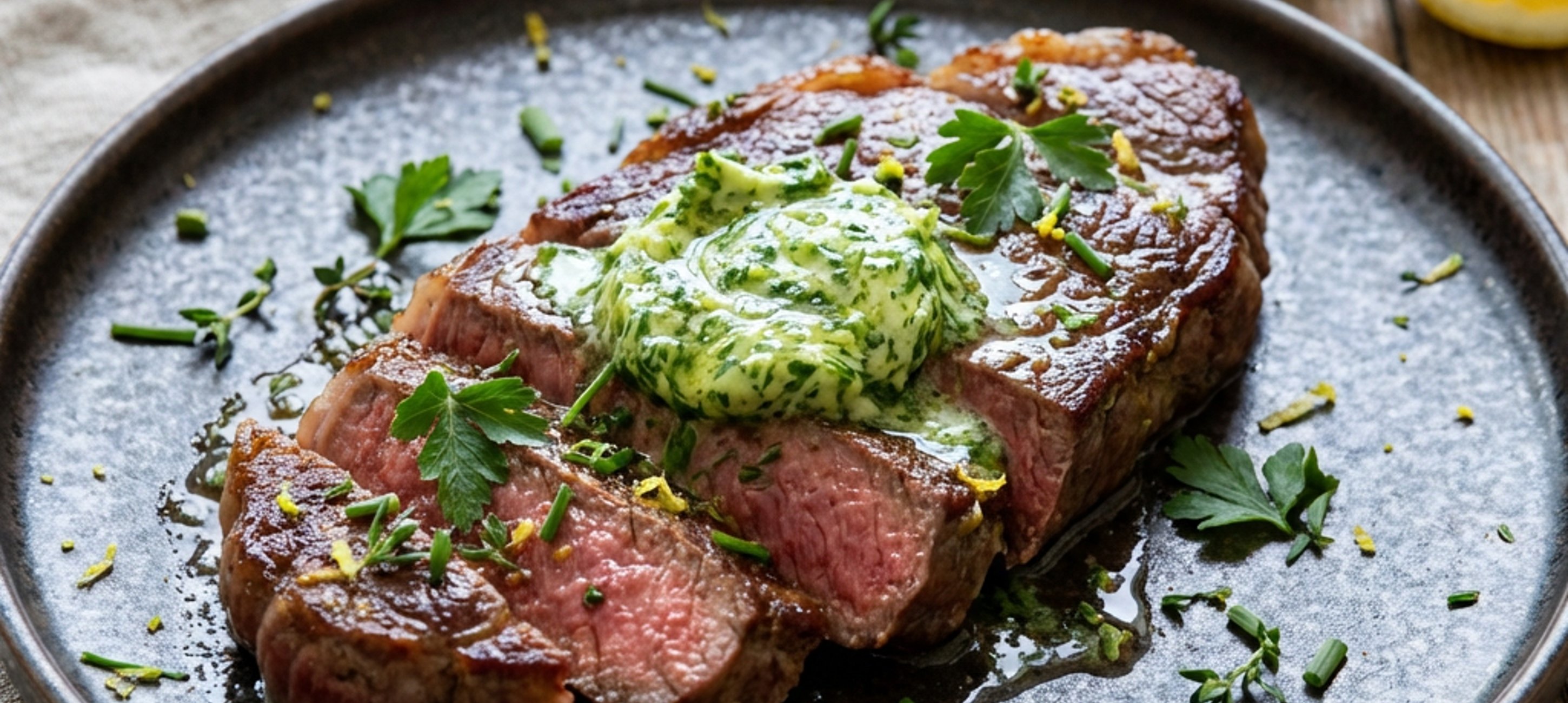 - 6Kräuterbutter auf das heiße Steak geben.