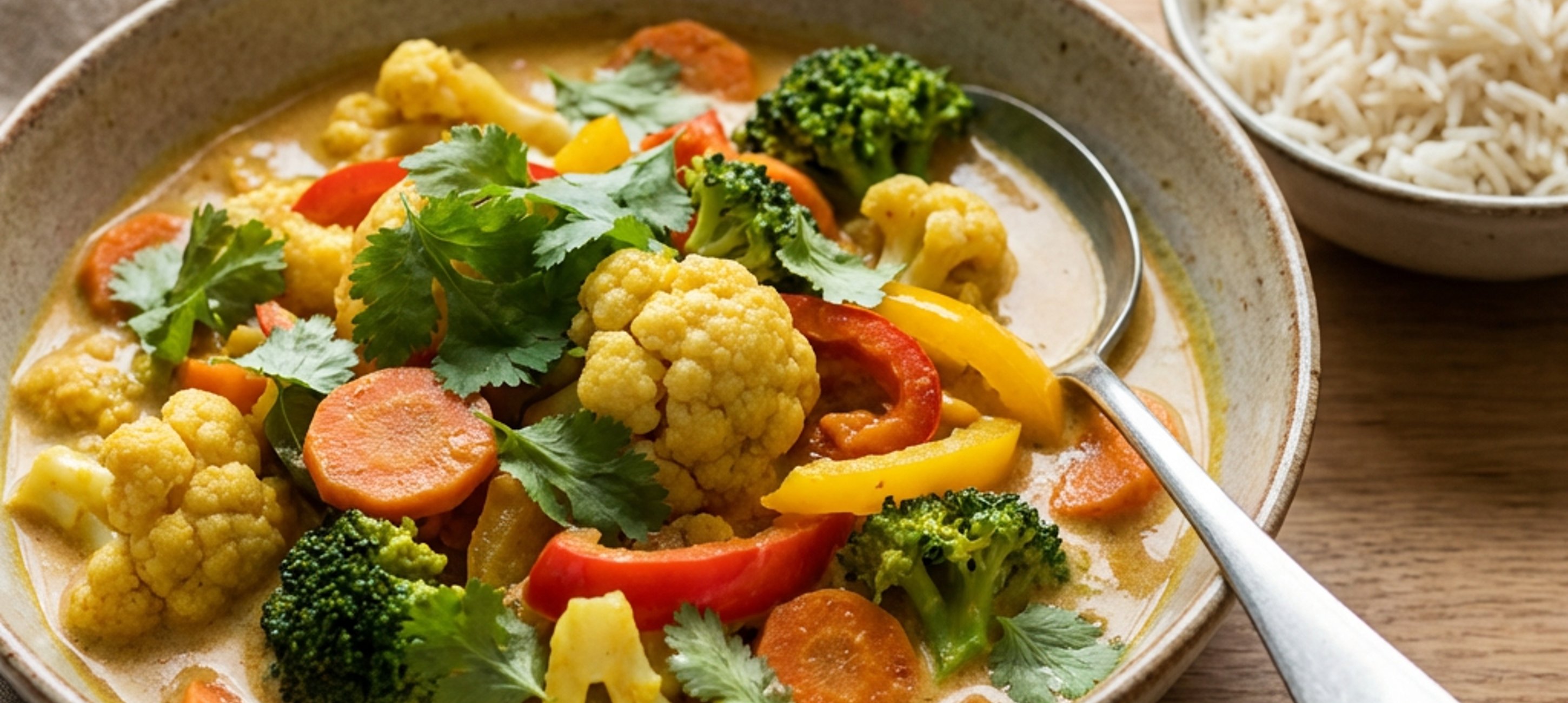 - 11Blumenkohl- und Brokkoliröschen hinzufügen, die Hitze auf die Hälfte reduzieren und ca. 5 Minuten köcheln lassen.