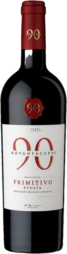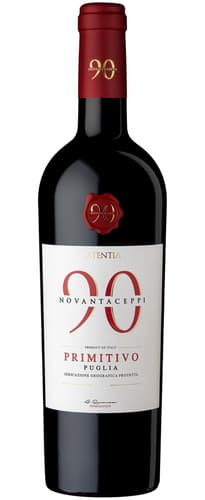 The Novantaceppi Primitivo Puglia IGT is a full-bodied red wine with aromas of dark berries, cherries, cinnamon, and black pepper. The grapes are harvested at full ripeness and processed into a velvety wine with soft tannins and a harmonious finish. Alcohol content: 13.5%.