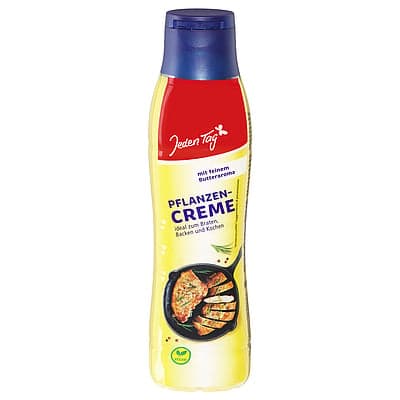 Rapsöl, Wasser, Palmfett, Speisesalz, Emulgatoren: Mono- und Diglyceride von Speisefettsäuren, Lecithine; Säuerungsmittel: Citronensäure; Aromen, Farbstoff: Carotin; Luft.