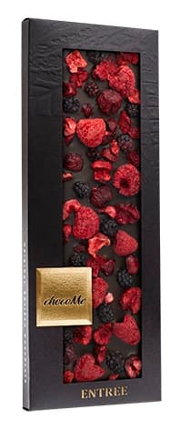 chocoMe Entrée Zarbitter Schokolade mit gefriergetrockneten Himbeeren, Erdbeeren, Sauerkirschen und Brombeere
