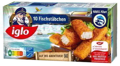 Käpt´n iglo's fish fingers have been delighting young and old since 1959 and put a smile on the face of every fish lover. Our happiness makers consist of 100 percent sustainably caught, juicy fish fillet in a crispy, golden-yellow breading.