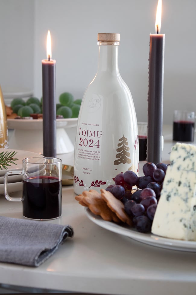 The Loimu 2024 vintage glögg is a limited Finnish specialty that appears annually with a new recipe and a unique bottle design. The 2024 edition impresses with a harmonious combination of arctic raspberries, Nordic plums and blackcurrants, refined with traditional winter spices. This glögg is based on high-quality red wine and has an alcohol content of 15 % vol. The elegant bottle design in shiny light grey with decorations in red, white and gold also makes it an attractive collector's item. For optimal enjoyment, it is recommended to heat the glögg to about 60 °C and enjoy it in a convivial atmosphere