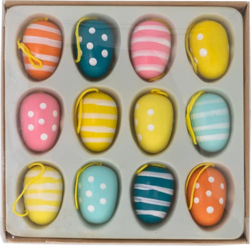 Idena Holz Ostereier zum Anhängen mehrfarbig 3cm 12 Stück