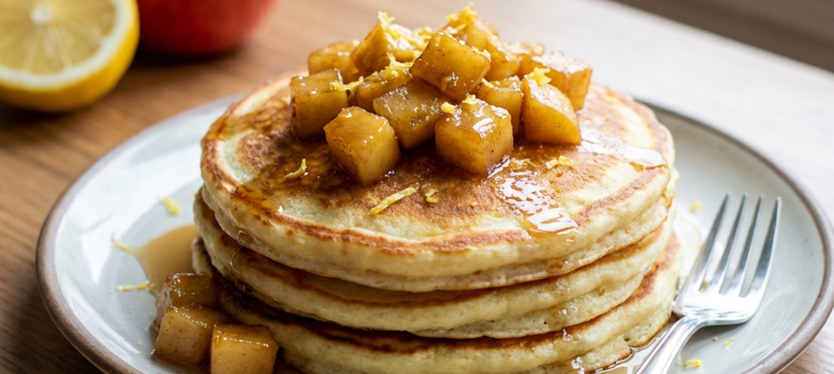 - 6Serve the apples with the pancakes. Sprinkle with cinnamon as needed or serve with maple syrup and lemon juice.